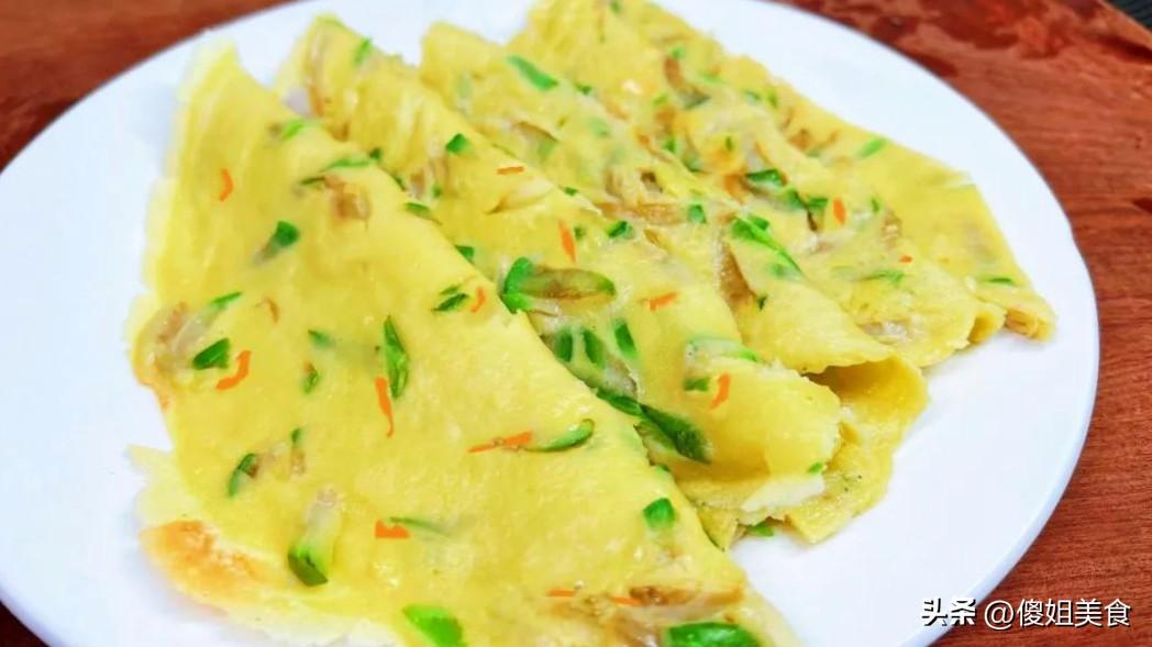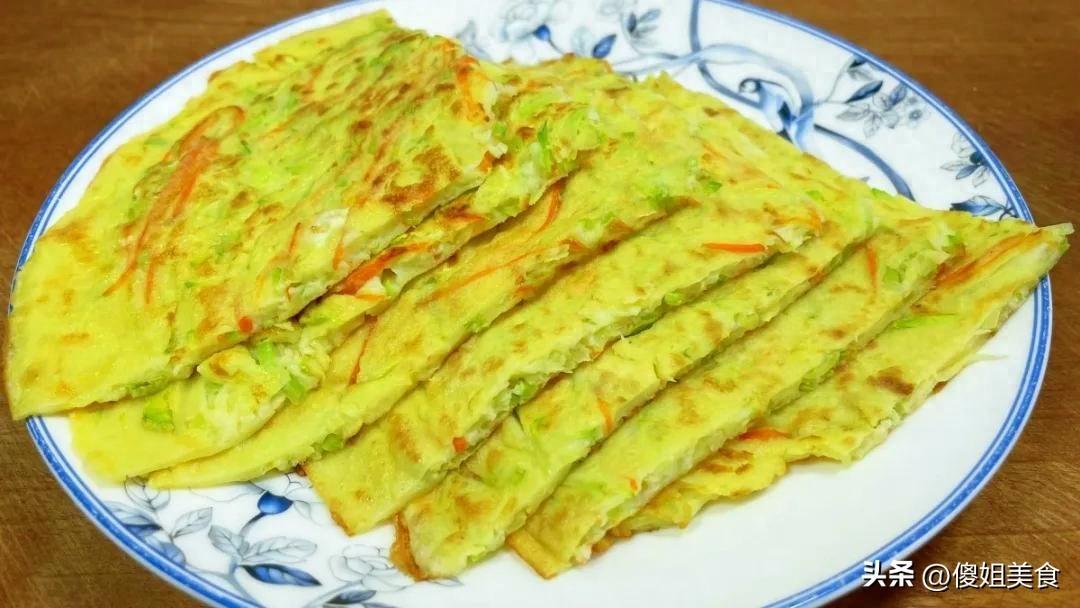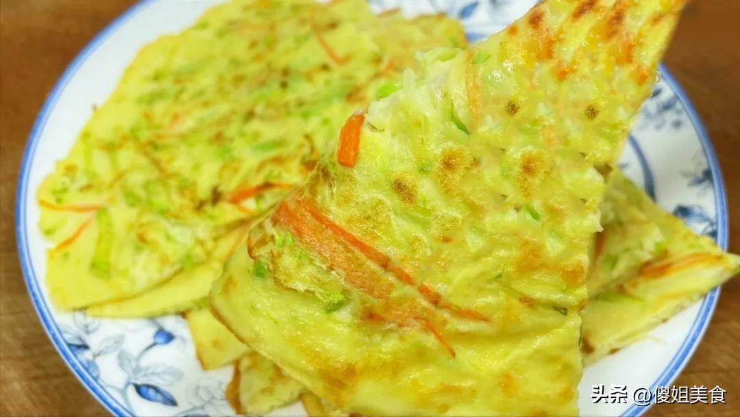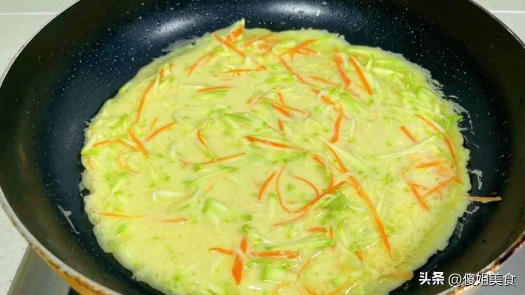 4、一次可以做多一點麪糊,但不要一次全烙完,麪糊放久了容易出水,最好現調現烙。如果實在想提前準備,可以把蔬菜擦好絲放冰箱,早上再調麪糊。