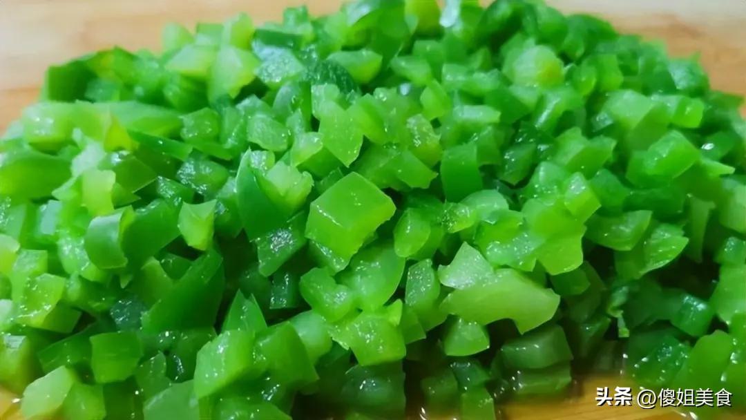 詳細步驟:第一步:將柿子椒洗淨後去籽去蒂,焯水後切成小粒,不要切得太碎,保留一些顆粒感,喫起來口感更好。