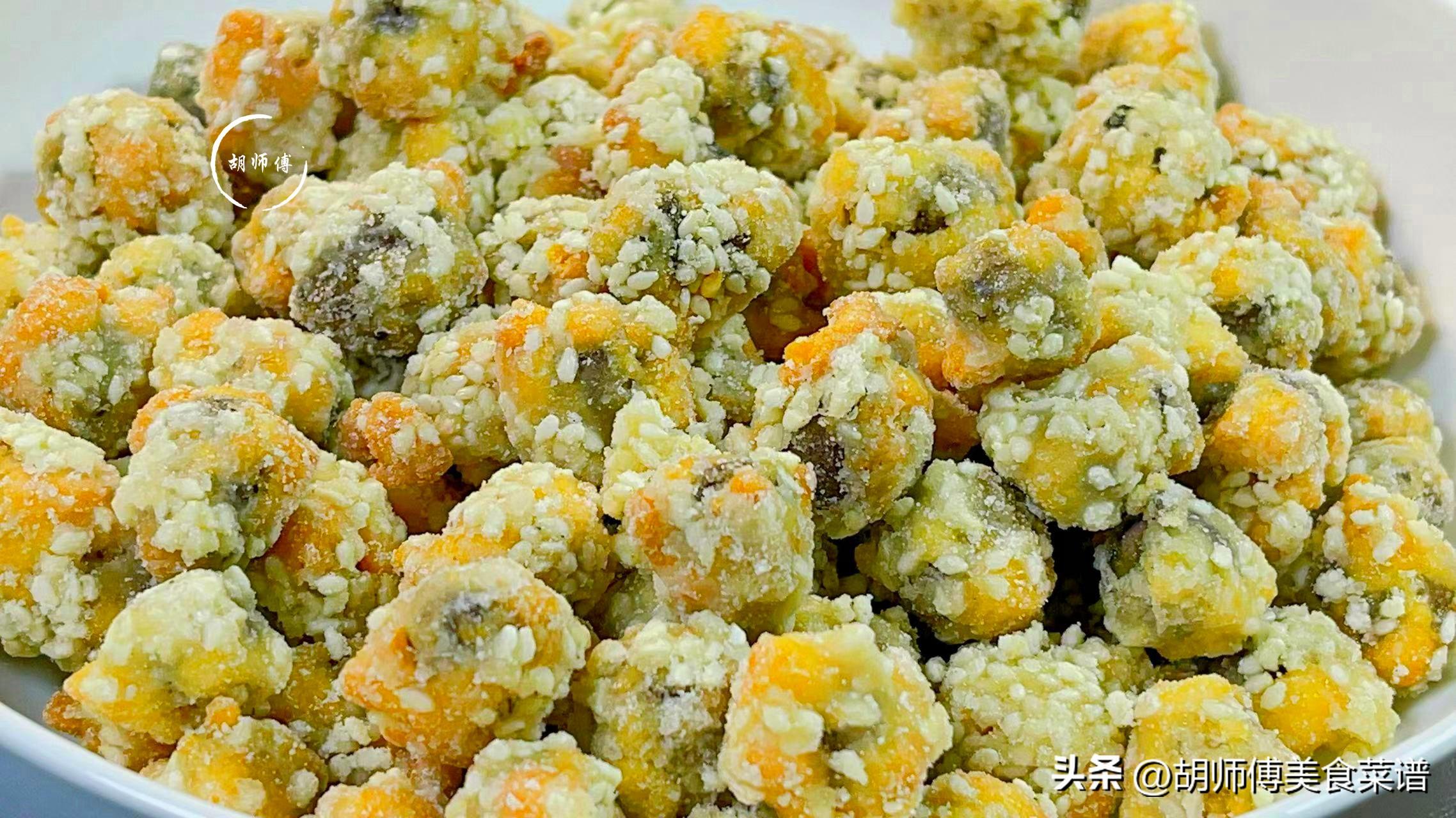 【食材準備】:山藥豆1斤、澱粉100克、白砂糖150克、熟芝麻適量。