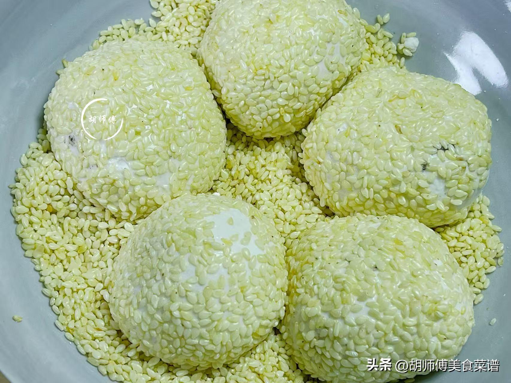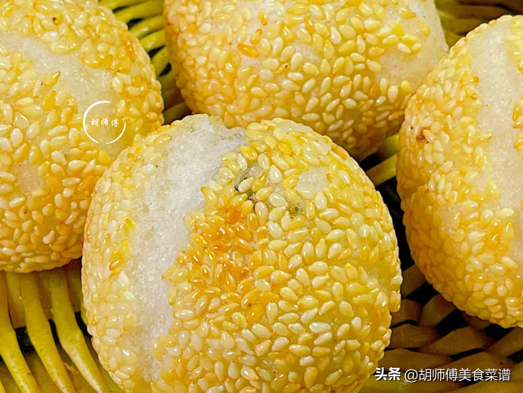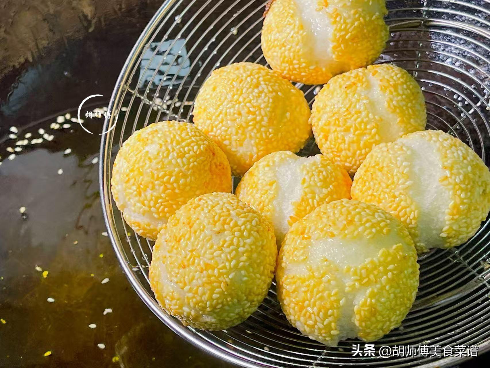 2、炸黑芝麻球時,一定要低油溫小火炸,油溫高火候大,黑芝麻球很容易炸糊,而且裏面的還沒有完全熟。