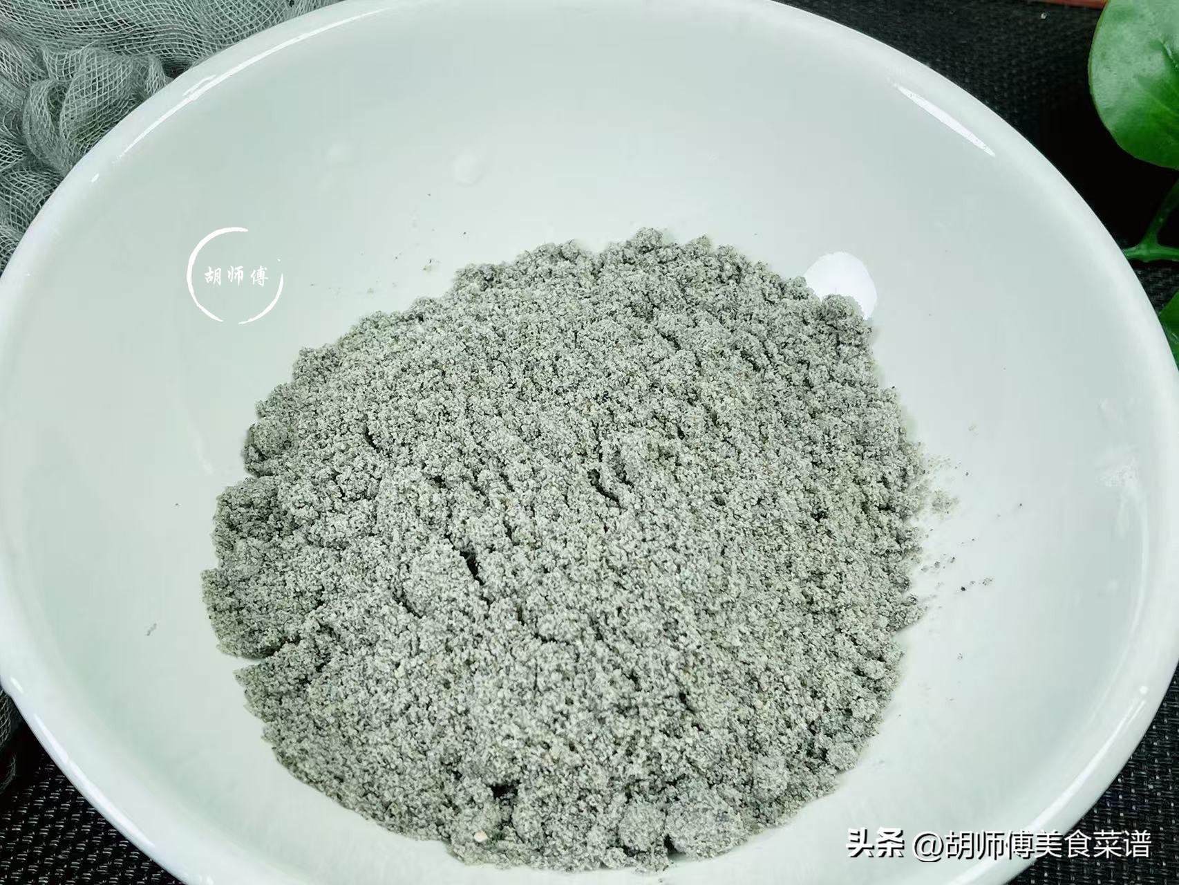 第一步:將黑芝麻放入鍋中,小火將黑芝麻炒5分鐘左右,直到聞到很濃烈的芝麻香味後即可關火,然後將黑芝麻倒入盆中放涼,等黑芝麻完全冷卻後倒入研磨機中,將黑芝麻研磨成粉末備用。