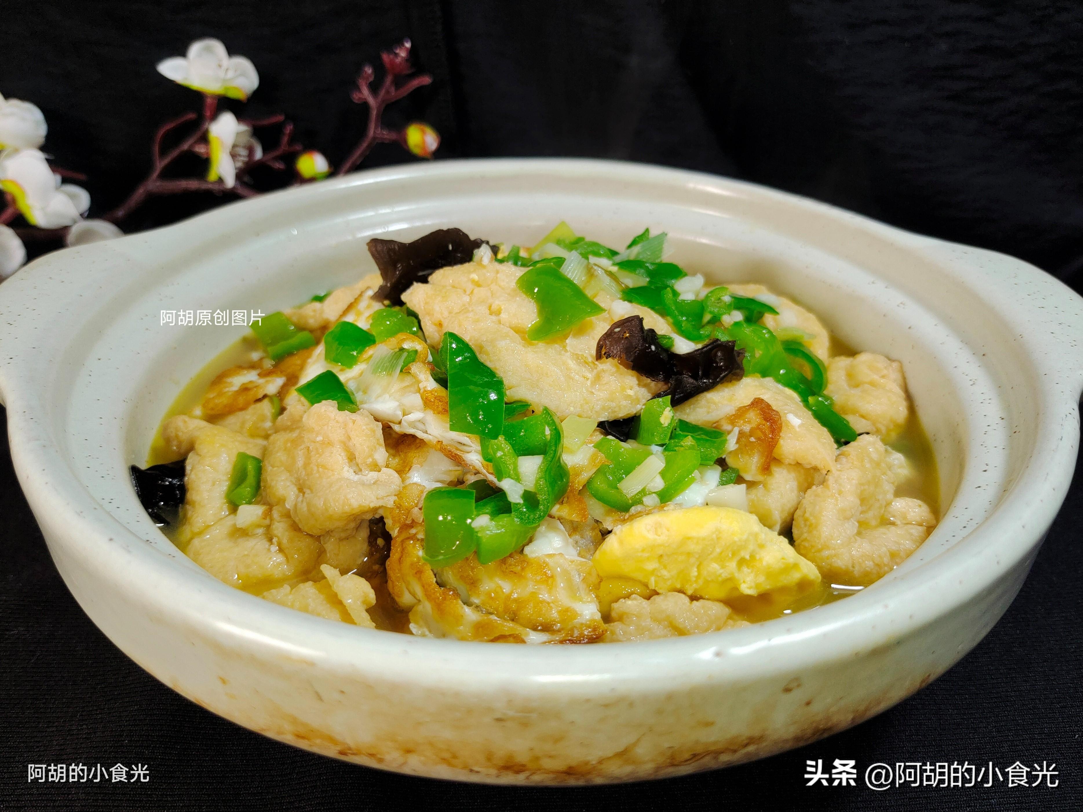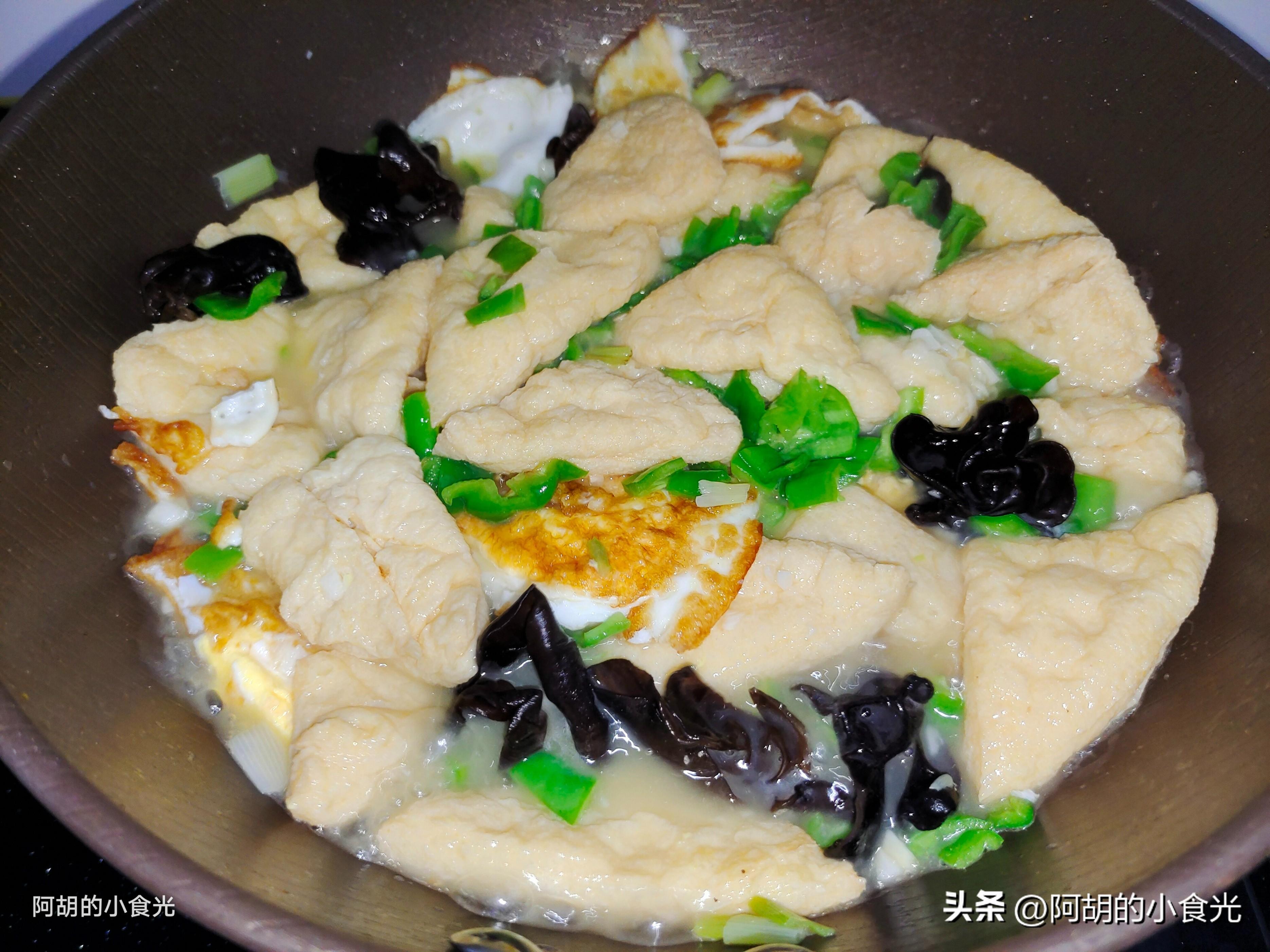 今天這道菜主要的食材有三樣,荷包蛋、油豆腐和青椒,還有一個木耳也可以加入一點,油豆腐吸收了青椒荷包蛋的湯汁,軟嫩又多汁,咬一口就爆汁的感覺,配米飯喫也是無敵了,感興趣的一定要試一試。