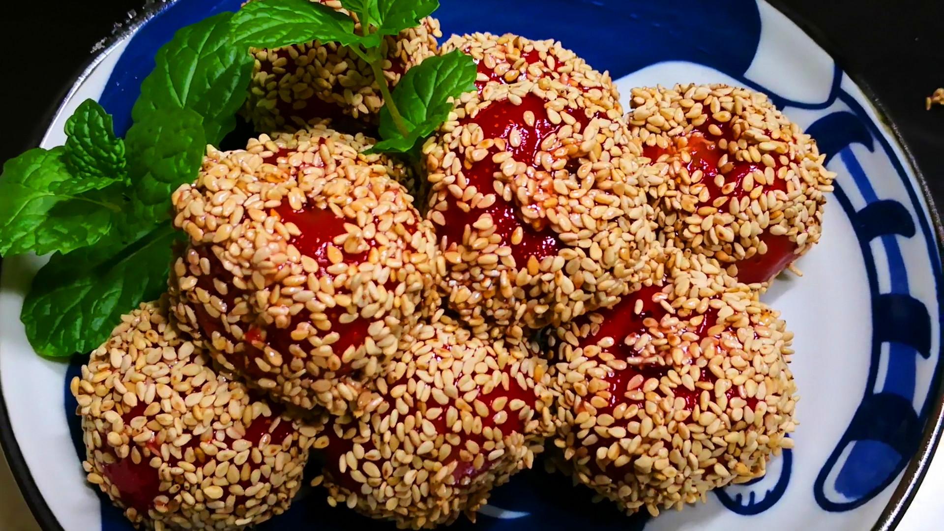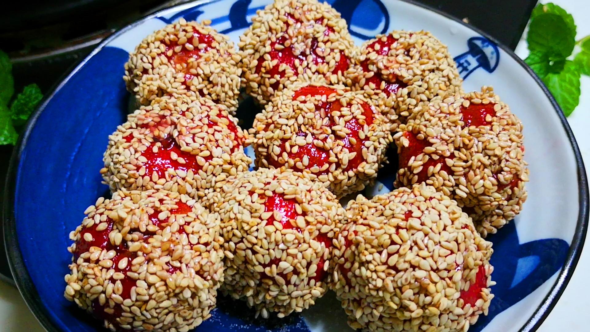 裹好芝麻的山楂球放到抹了油的盤子或盤子上,靜置5分鐘左右,讓糖漿完全凝固後就可以開喫了,酸酸甜甜的太好喫了!