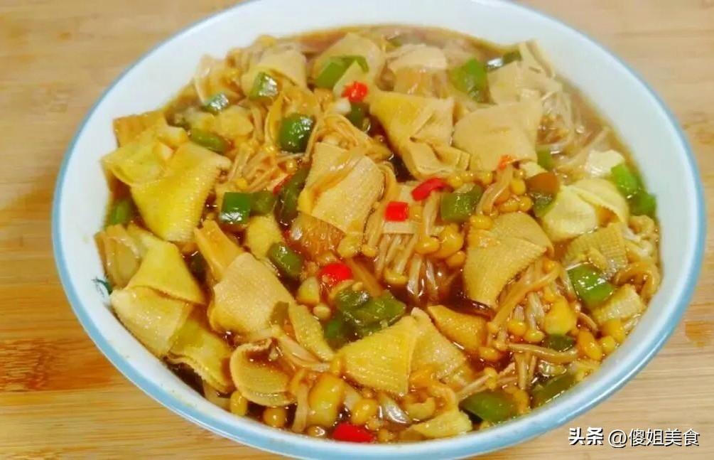 接下來就和大家分享在我家頻頻亮相的「豆腐皮燉金針菇」,這道菜既有豆製品的醇香,又有菌菇的鮮美,口感豐富,做法簡單,就算是廚房新手也能輕鬆搞定。