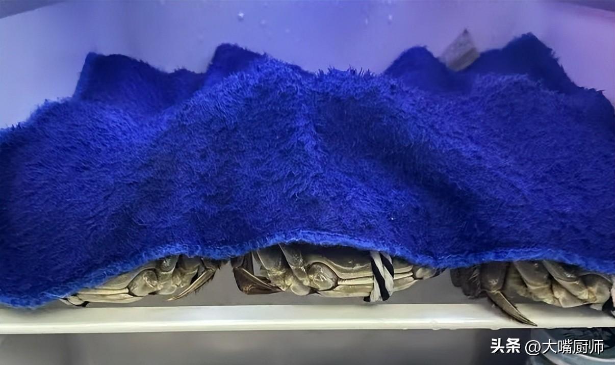 然後,取一條幹淨的溼毛巾,輕輕地覆蓋在螃蟹身上。溼毛巾要保持溼潤,它可以爲螃蟹提供必要的水分,防止螃蟹因缺水而死亡。這是因爲螃蟹的鰓需要保持溼潤才能正常呼吸,溼毛巾就起到了維持鰓部溼潤的作用。