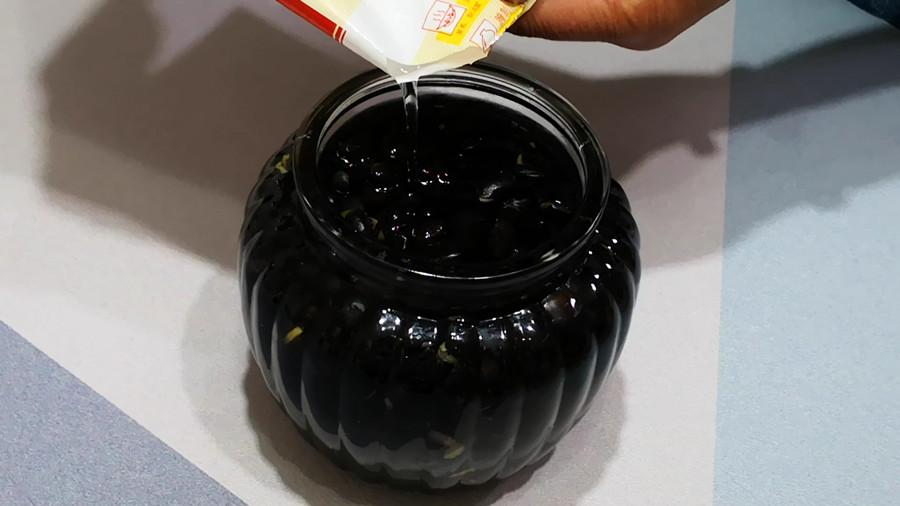 製作方法:將黑豆洗淨,晾乾水分,然後放入鍋中用小火炒熟,注意不要炒焦,炒到黑豆微微開裂即可。炒好的黑豆晾涼後,放入乾淨的玻璃瓶中,倒入米醋,醋要沒過黑豆,然後密封好瓶口,放置在陰涼處浸泡三天左右,待黑豆充分吸收醋液後,就可以食用了。