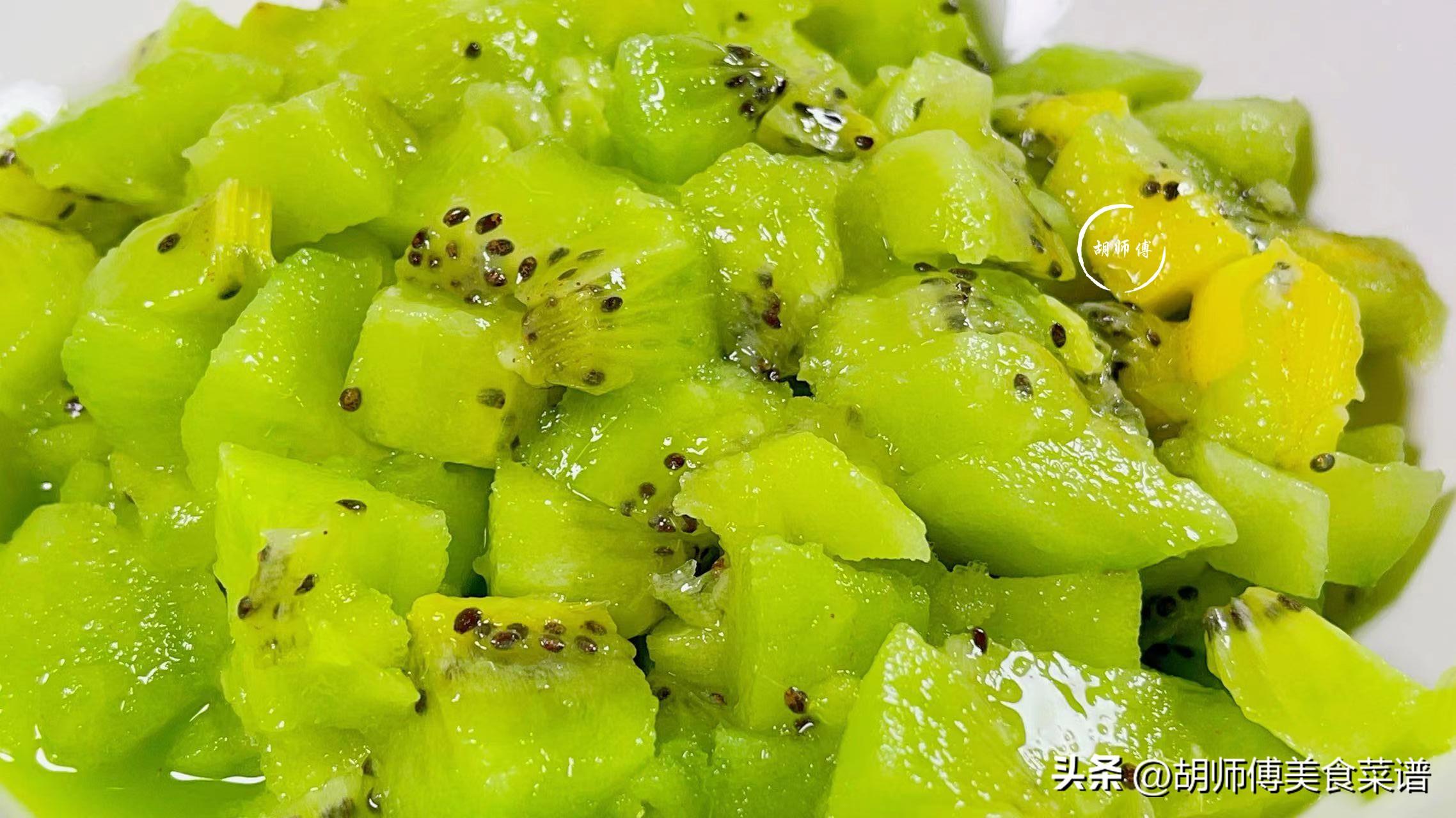 第一步:將獼猴桃的皮剝的扔掉,然後將獼猴桃沖洗乾淨,一定要衝洗,因爲獼猴桃表面的毛,非常影響獼猴桃的口感,接着再把洗淨的獼猴桃切成薄片備用。