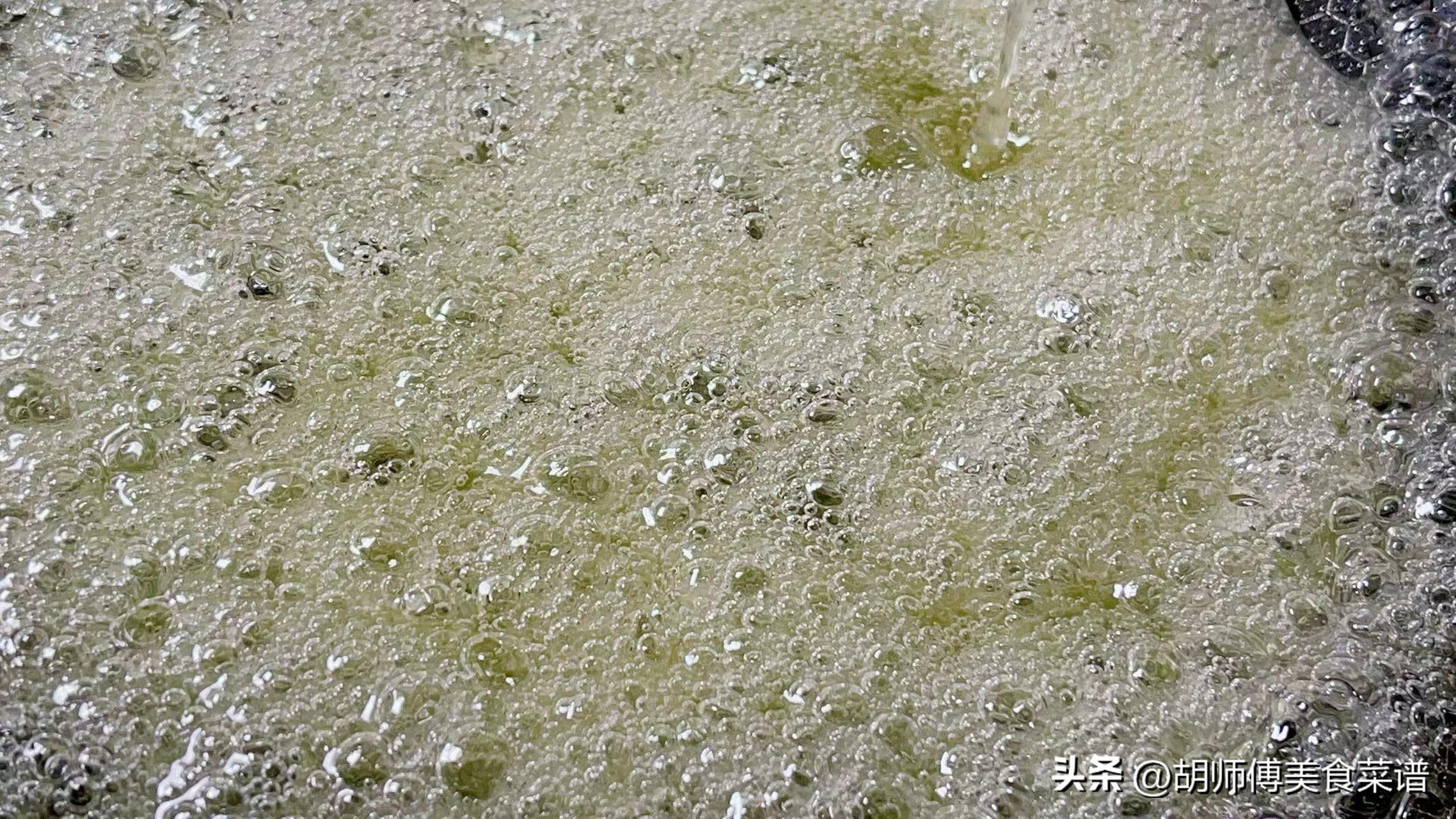 第二步:將冰糖和100ml水放入鍋中,然後開中小火,不斷攪拌冰糖,等冰糖融化後改小火,繼續炒一會兒,直到鍋中出現大量大的魚眼泡泡,就代表糖熬好了。