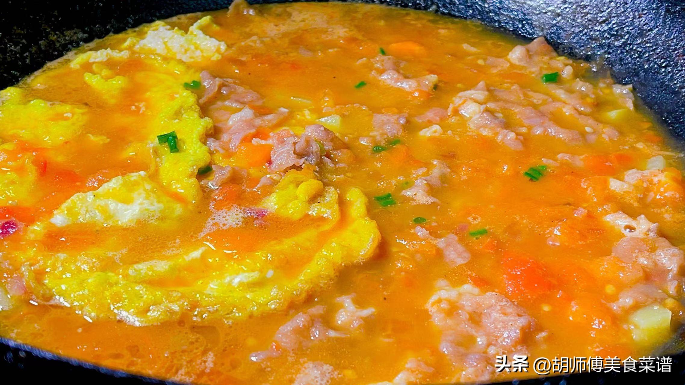 【食材準備】:番茄2個、肥牛200克、土豆1個、雞蛋皮1個(可不要)、食鹽、雞精、蒜末、食用油適量。
