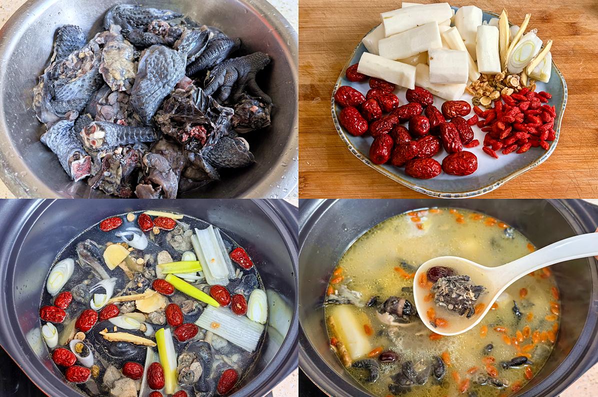 1. 烏雞半隻,洗淨切塊,冷水下鍋焯水後撈出