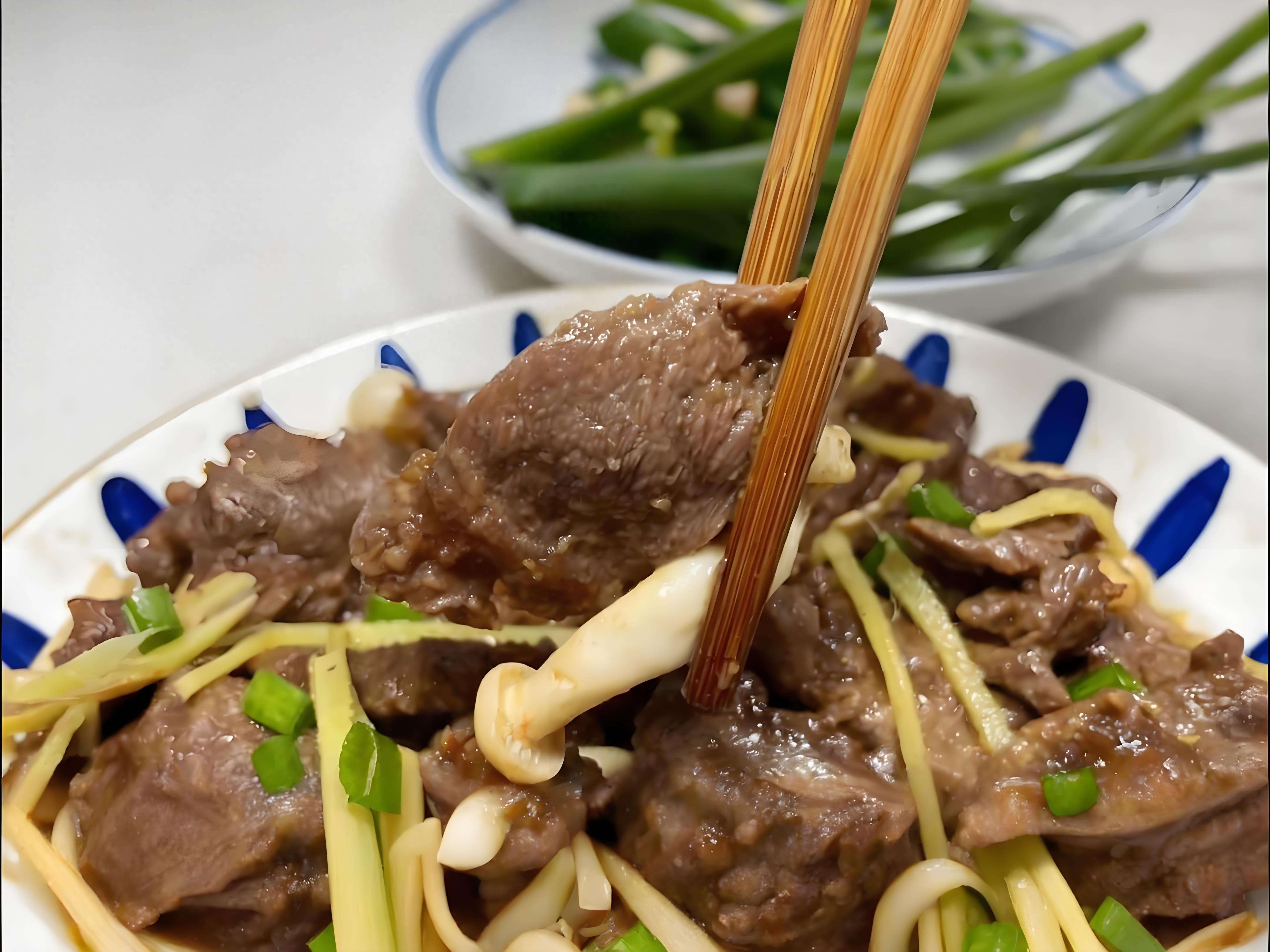 這道菜可以說是“陽氣十足”!牛肉性溫,富含蛋白質和鐵質,能補中益氣;生薑辛溫,能溫中散寒;白玉菇則增加了菜餚的鮮美口感。蒸制的方法既保留了食材的原汁原味,又不會上火,特別適合秋冬季節食用。喫完後感覺全身暖暖的,特別舒服!