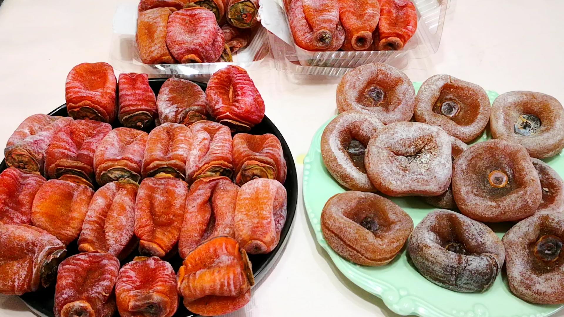 柿子的喫法也是多種多樣,簡單一做就能讓我們在整個冬天都能品嚐到它的美味。最原始的喫法當屬直接食用新鮮柿子。成熟的柿子色澤橙紅,宛如一個個小巧的燈籠,散發着誘人的香氣。輕輕咬上一口,軟糯的果肉在口中散開,甜潤的汁水瞬間充滿整個口腔,那甜蜜的味道讓人回味無窮。但是有些柿子會有一些發澀,需要用白酒暖一下才可以食用。
