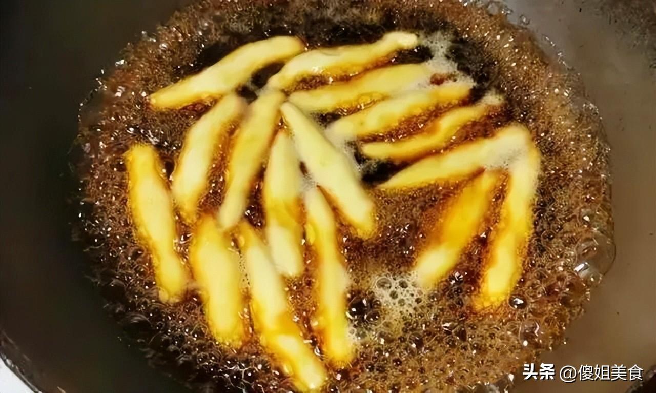 說到芋頭,大家通常會想到直接切塊紅燒或者蒸着喫。但其實把芋頭做成芋頭面團再烹飪,口感會更加獨特。這種喫法在南方一些地方特別流行,做好的芋頭條外皮微微焦香,內裏軟糯Q彈,比單純的燒芋頭多了幾分嚼勁,喫起來更有趣味。