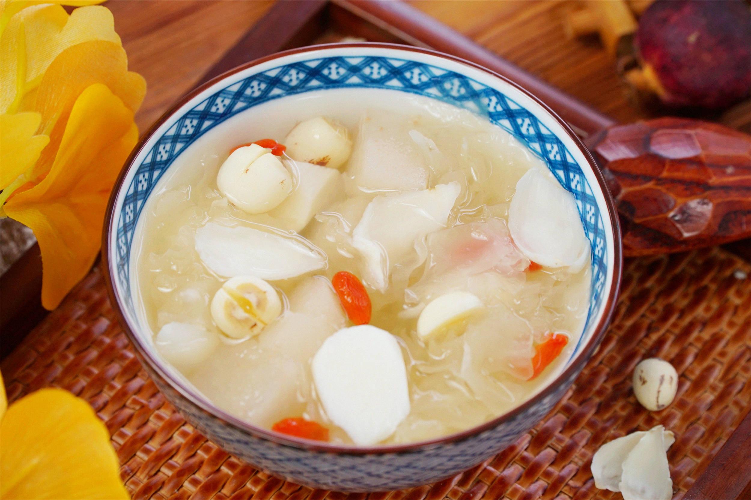 推薦喫法,五白湯。山藥搭配其它白色食物一起煮湯喝,美甘甜,很是滋潤滋養身體。百合銀耳蓮子清甜潤燥,梨子能緩解乾咳,全部放在一起煲成一碗五白湯,是秋末冬初養人的好助手。