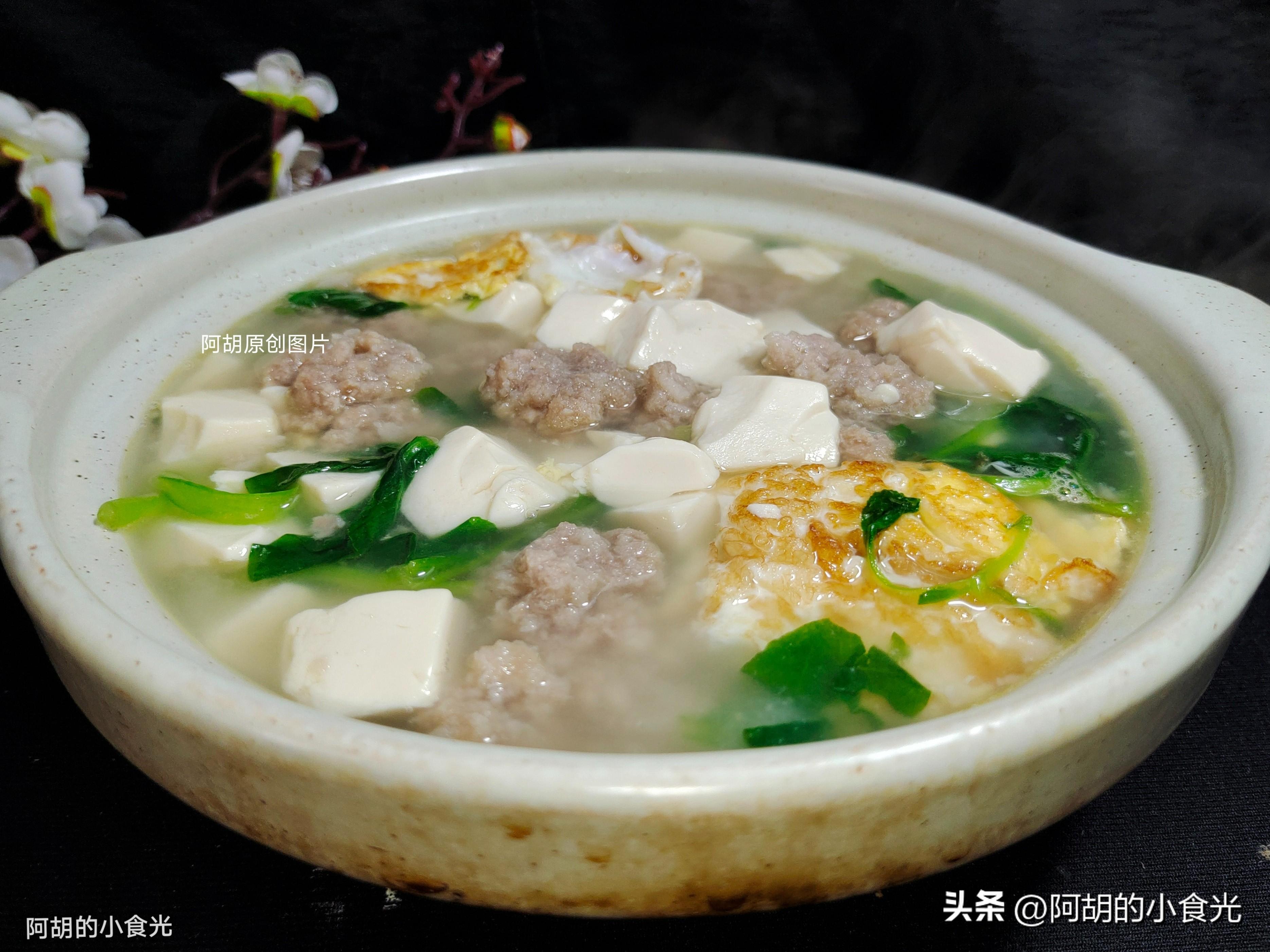 我是阿胡的小食光,一個喜歡研究把普通食材做出更多花樣美食的饕餮小食客!飯前一碗湯,開胃又暖人,今天這碗好喝容易做的青菜豆腐雞蛋汆肉湯的值得試一試,菜嫩肉滑好喫好喝又開胃。如無特殊情況,我每天都會按時分享一道家常美食的做法,在此特別感謝您的每一個贊和“小紅心”,明天的內容依舊很精彩,敬請期待!
