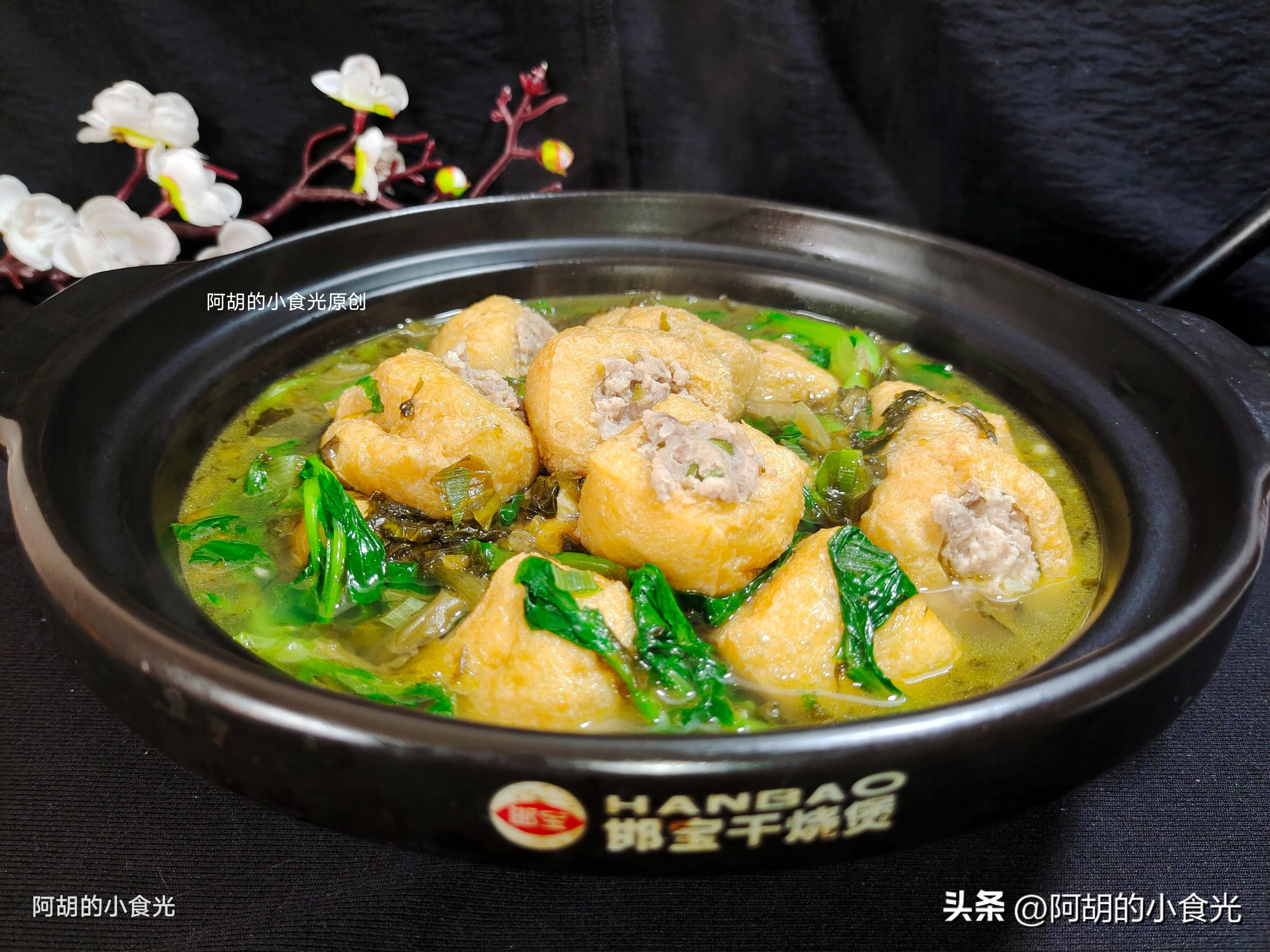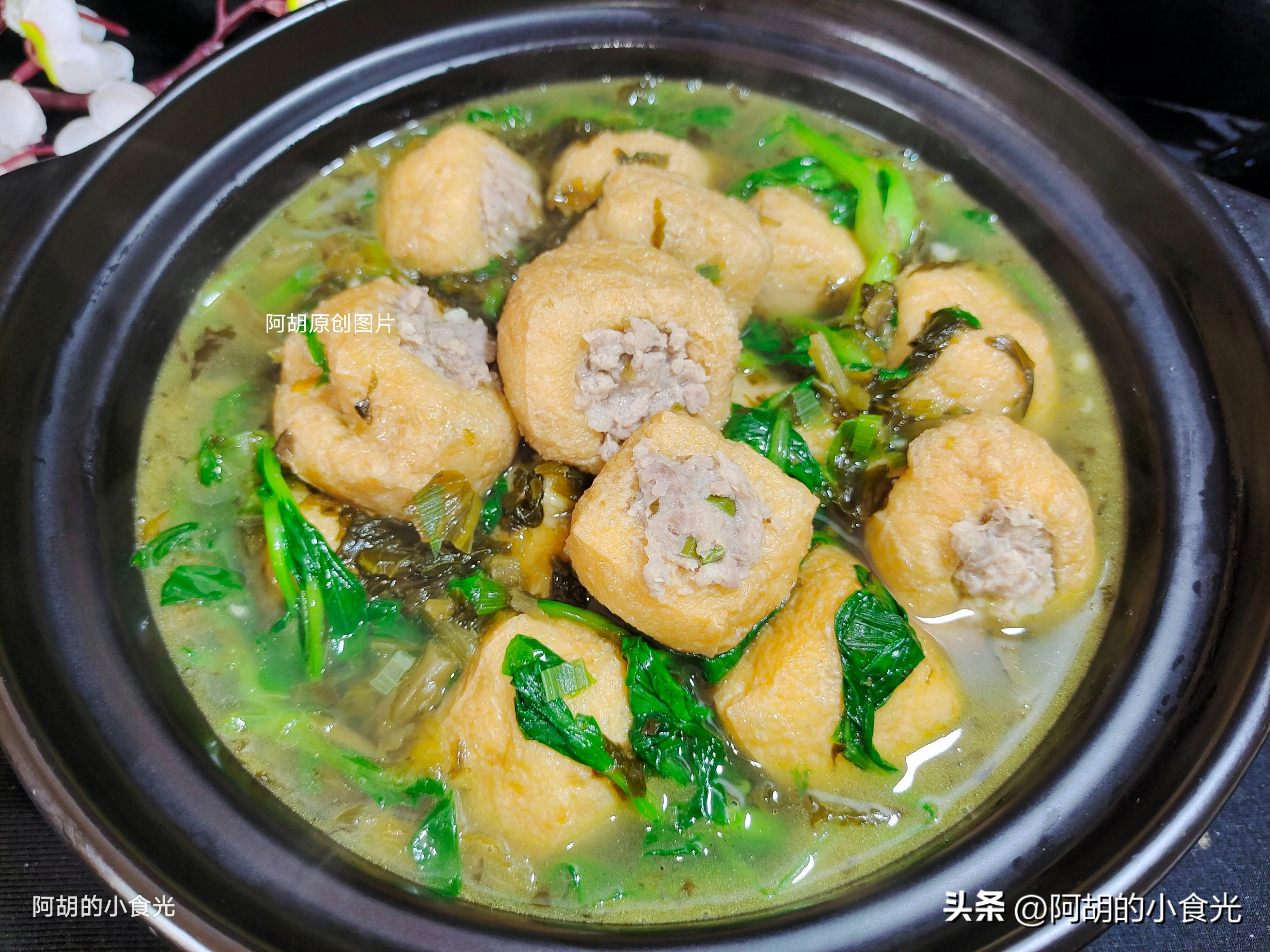 我是阿胡的小食光,一個喜歡研究把普通食材做出更多花樣美食的饕餮小食客!今天這道菜可以嘗試一下,油豆腐塞肉用雪菜和青菜煮一煮,湯水浸滿了油豆腐,一口爆汁又好味,有一個下飯好菜。如無特殊情況,我每天都會按時分享一道家常美食的做法,在此特別感謝您的每一個贊和“小紅心”,明天的精彩內容依舊,敬請期待!