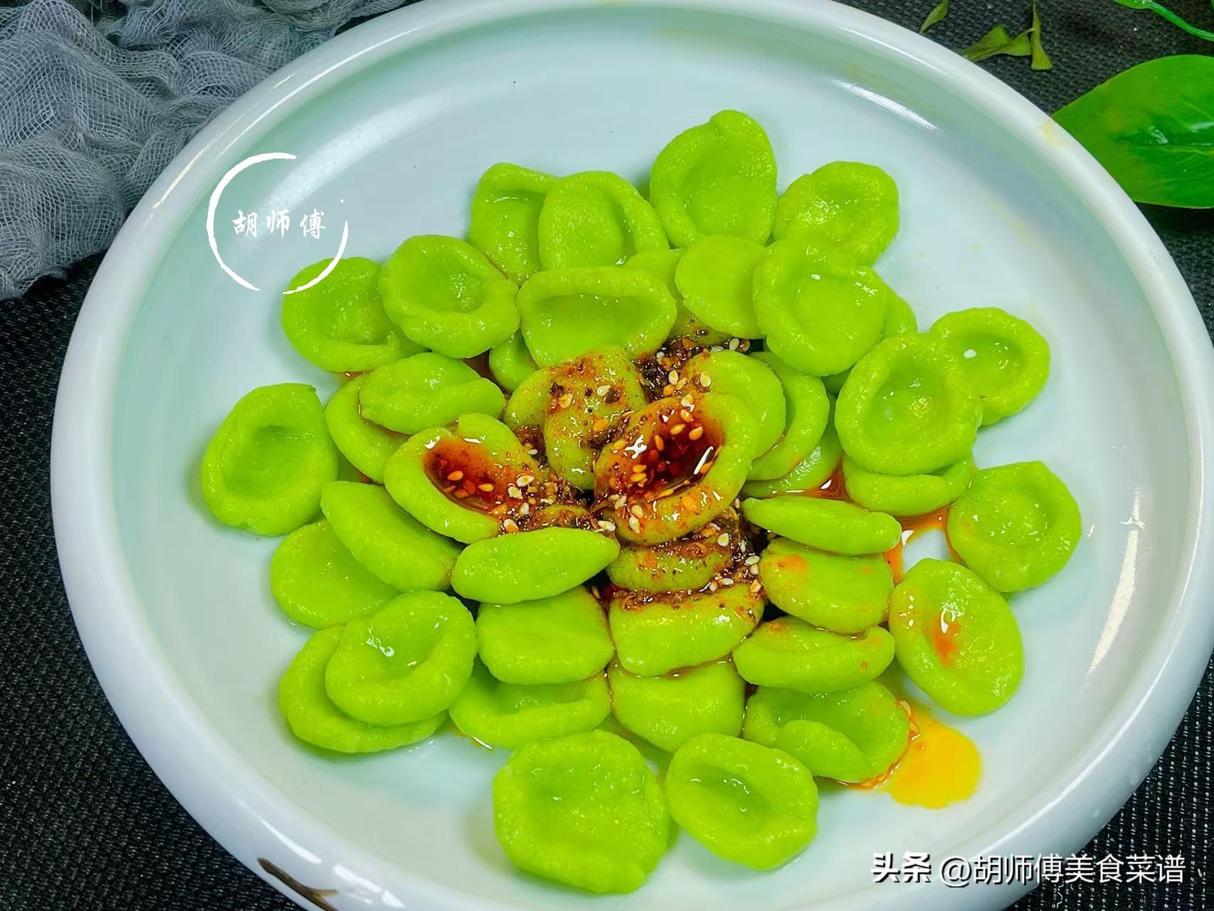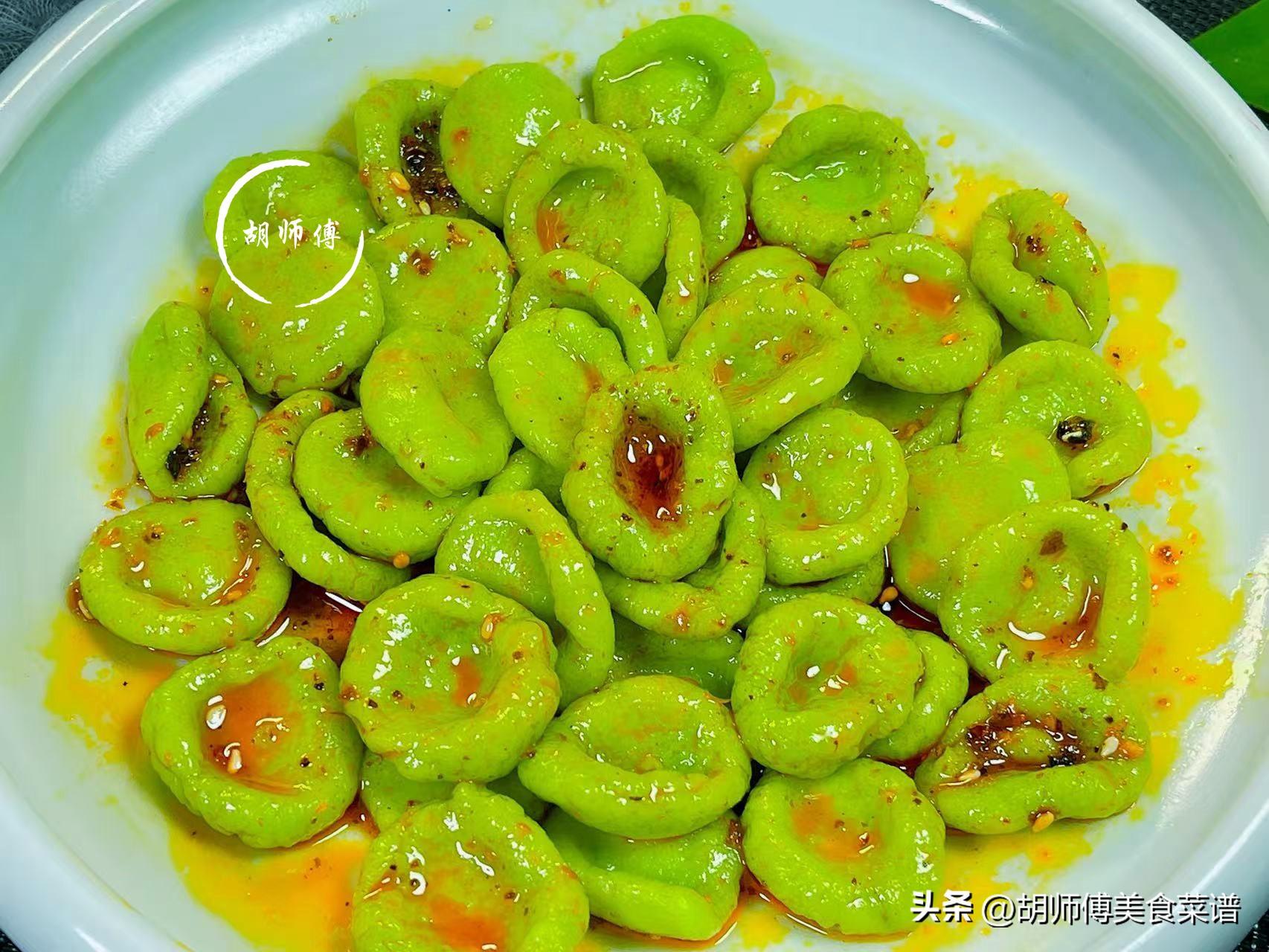 【食材準備】:毛豆300克、麪粉300克、食鹽、小蘇打1克、辣椒油、生抽、香油適量。