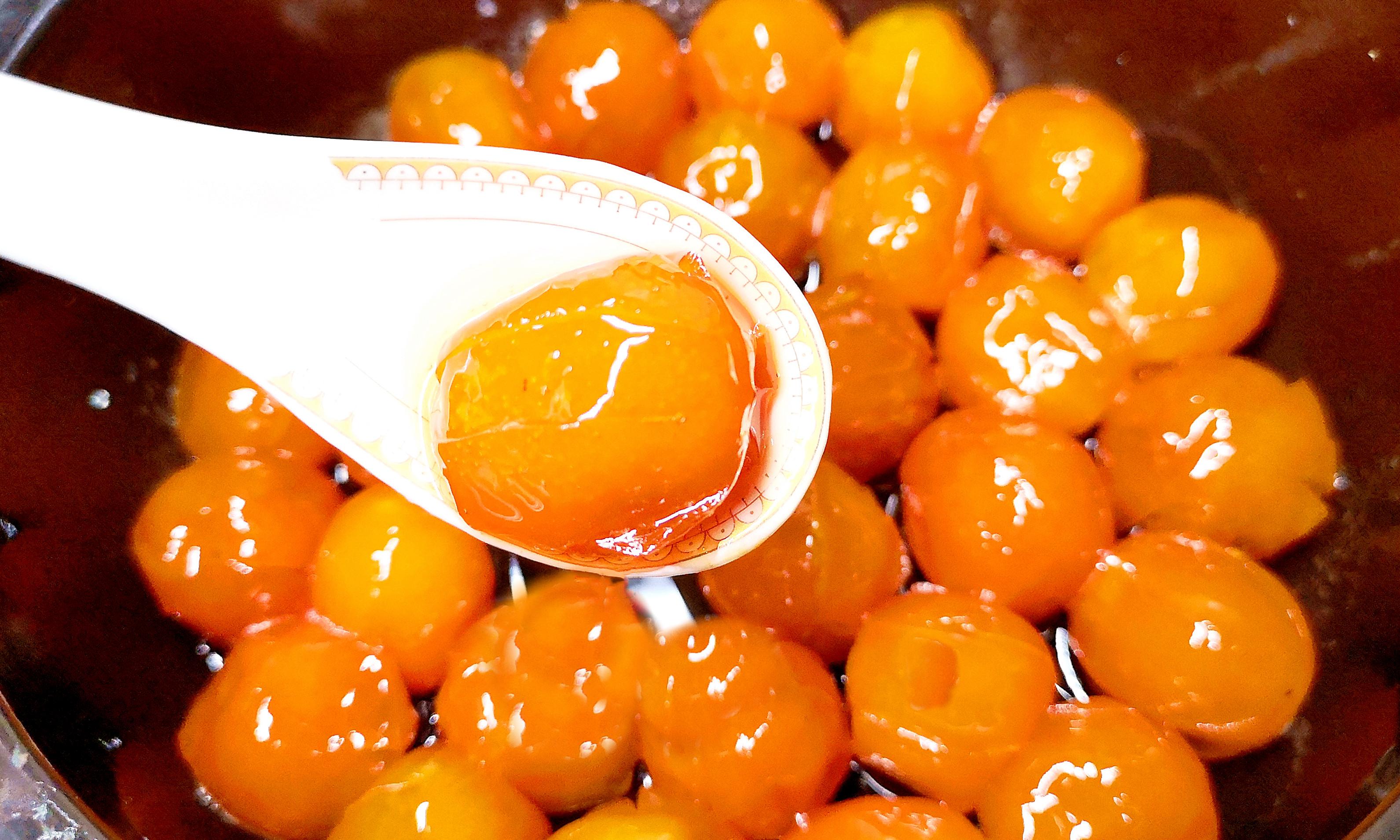 做好的糖漬金桔,像一顆顆小寶石,可以直接當零食喫,也可以泡水喝,甜滋滋的,還有化痰止咳的妙用。