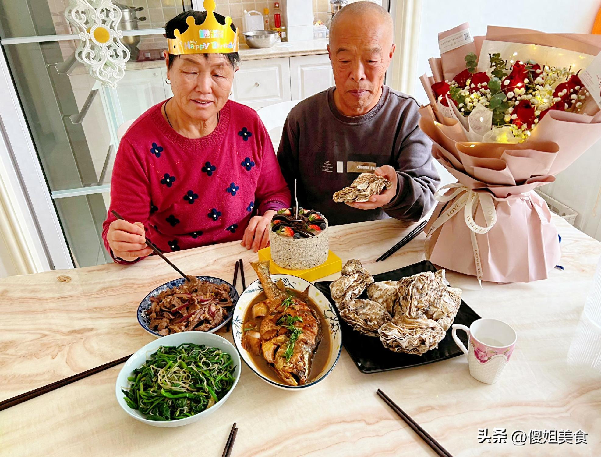 老媽生日,我們小兩口商量着在家簡單過個溫馨的生日。媳婦早早開始張羅,想着就我們四個人,做太多菜喫不完浪費,便精心準備了四道菜:燉了一條肥美的大黃花魚,蒸了滿滿一盤生蠔,做了個香噴噴的洋蔥拌牛肉,還有一道清爽的菠菜拌粉絲。除了這些,媳婦還特意訂了一個小巧精緻的蛋糕,準備了一束鮮花,又封了個紅包。