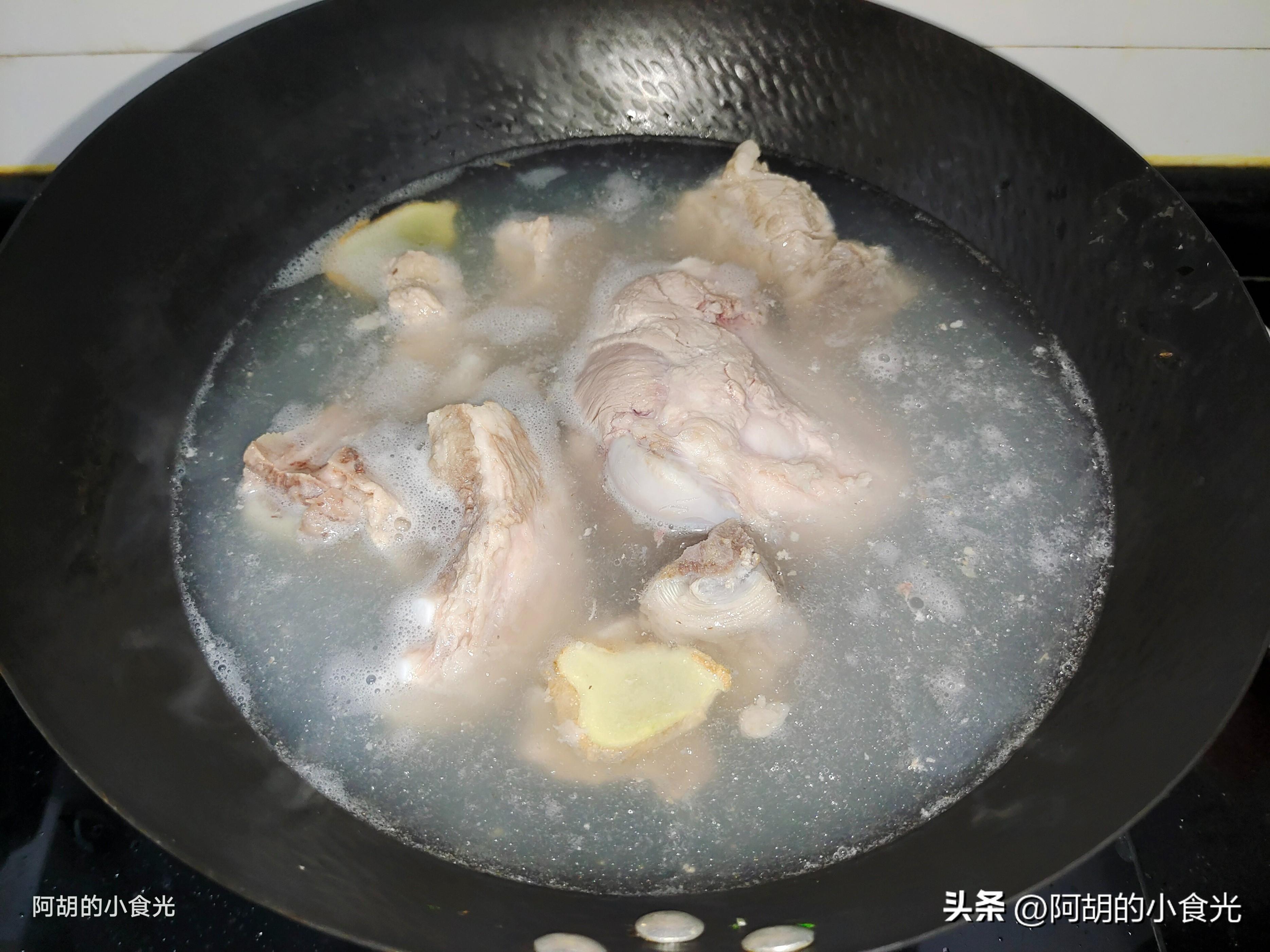 第一步:準備適量的豬骨,我這裏用的是一些筒子骨和一些脊骨,你也可以用排骨來製作,將豬骨用涼水浸泡一個小時,泡出一些血水,而後再涼水下鍋加入一些料酒和薑片,大火開始焯水,過程中將水面浮出的血沫打撈乾淨,就這樣煮個5分鐘左右,撈出後再用溫水沖洗乾淨,置於一邊備用。
