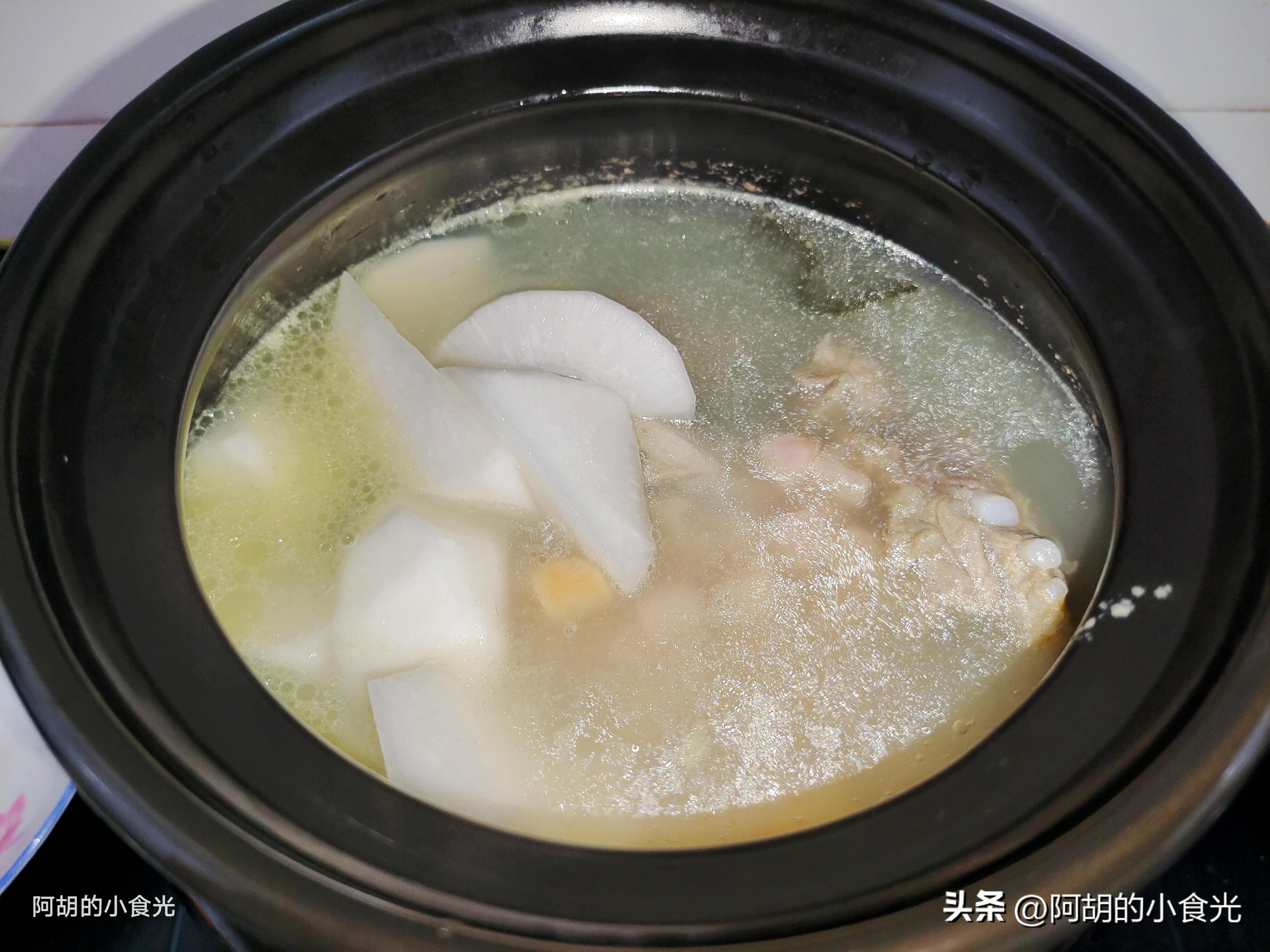 今天這個做法中的乾貝和蘿蔔也可以和豬骨一塊下鍋煲煮,爲了乾貝儘量不要被煮的太碎,我就將其放到最後才下鍋,大家按照自己的方法來即可。