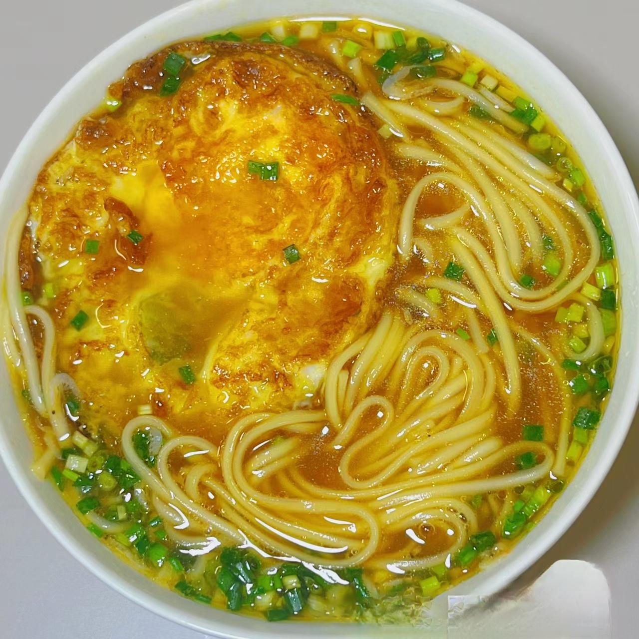 食材:溼麪條,雞蛋2個,鹽,蔥,生抽,香油,青菜1把