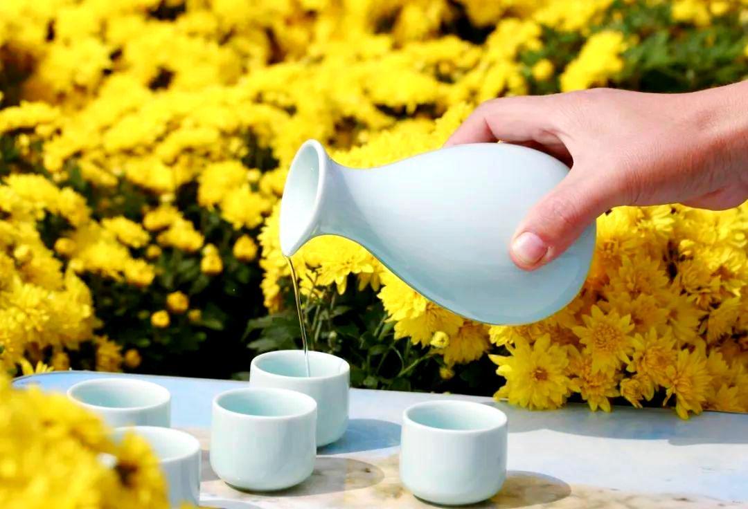 重陽到,菊花盛開了,這一天,不僅可以觀賞菊花, 還可以用菊花釀酒,喝菊花酒。菊花酒,是由菊花與糯米、酒麴釀製而成的漢族傳統酒,古稱長壽酒,其味清涼甜美。