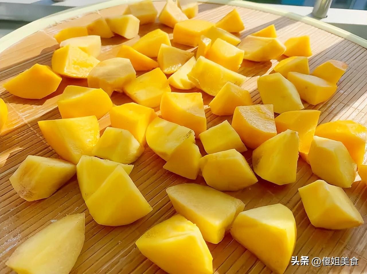 將柿子清洗乾淨,摘掉果蒂,削掉柿子皮。切柿子是個技術活,太薄了曬乾後嚼着沒勁,太厚了又不容易幹,我一般切成均勻的柿子塊,這樣曬出來的柿幹軟硬適中。記得小時候最愛偷喫剛切好的柿塊,那清脆的聲音,現在想起來還流口水呢。