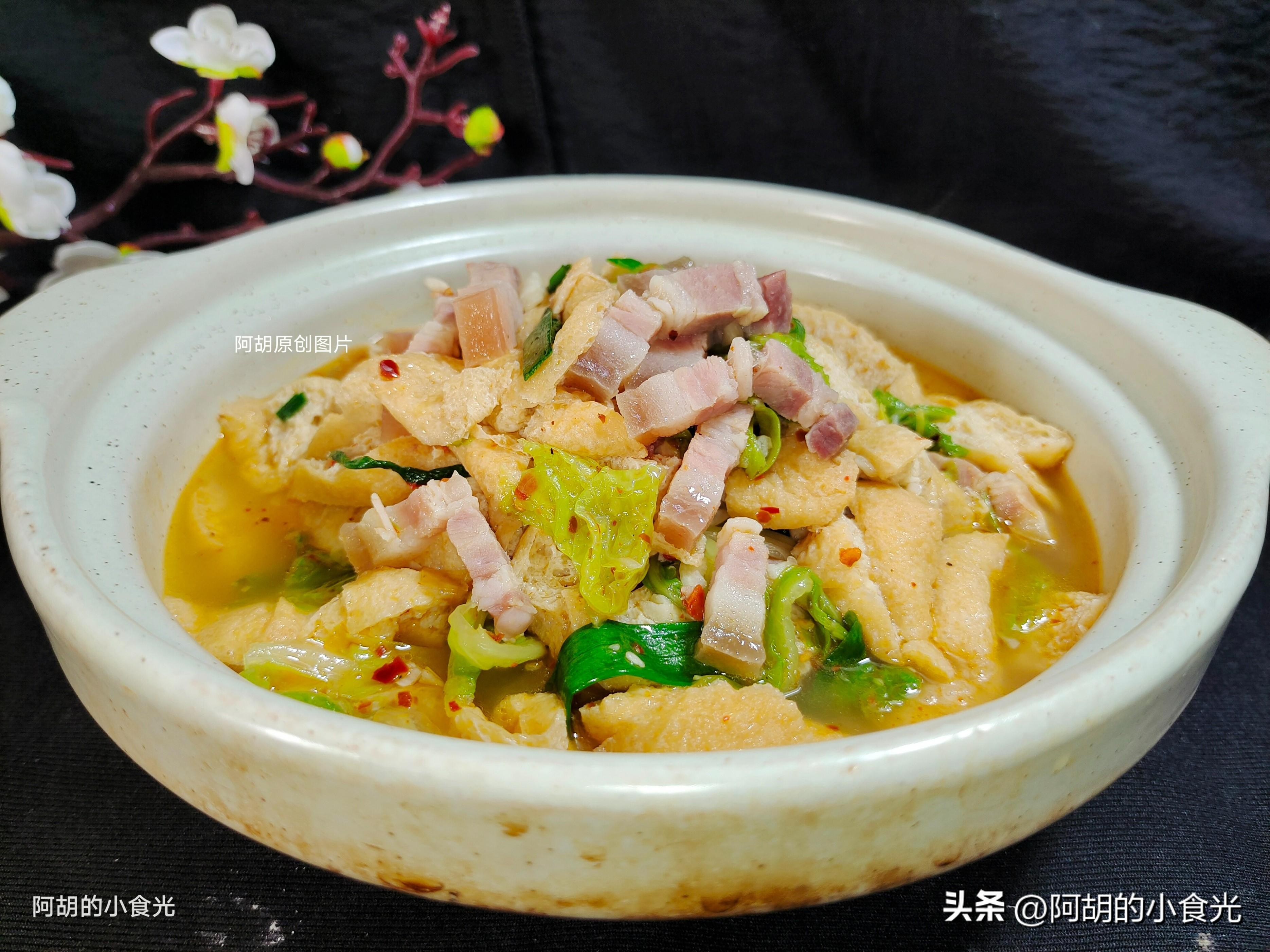 我是阿胡的小食光,一個喜歡研究把普通食材做出更多花樣美食的饕餮小食客!不知道喫什麼的時候這道菜可以試一試,鹹肉和油豆腐的精彩搭配,微辣鮮香,咬一口滿嘴都是湯汁,開胃又下飯,值得試一試。如無特殊情況,我每天都會按時分享一道家常美食的做法,在此特別感謝您的每一個贊和“小紅心”,明天精彩內容依舊,敬請期待!