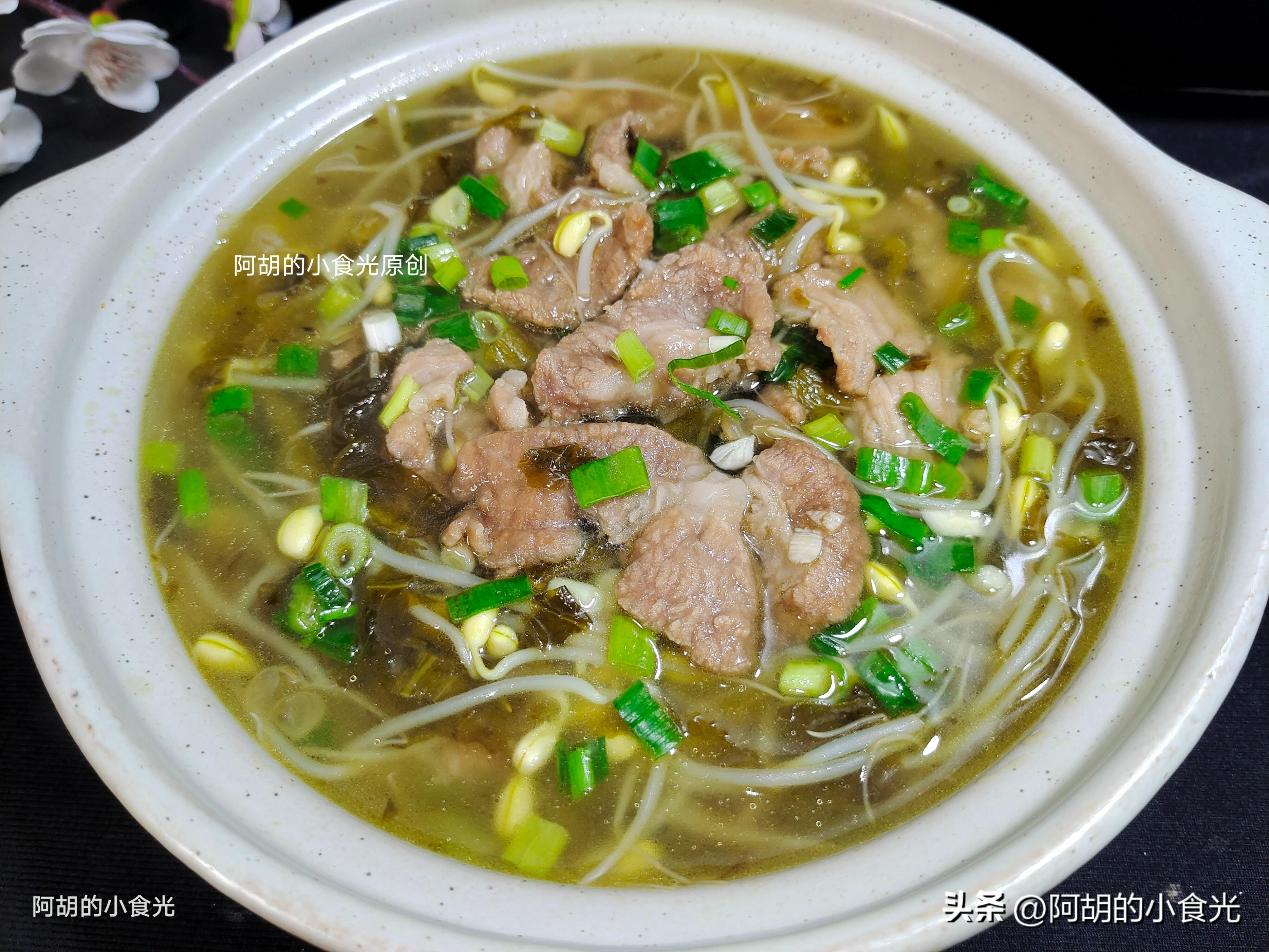 我是阿胡的小食光,一個喜歡研究把普通食材做出更多花樣美食的饕餮小食客!這個湯菜可以試一試,食材簡單好做,酸爽開胃,肉片滑嫩入味,能喝湯能喫菜,下飯無敵了。如無特殊情況,我每天都會按時分享一道家常美食做法,在此特別感謝您的每一個贊和“小紅心”,明天內容依舊很精彩,敬請期待!