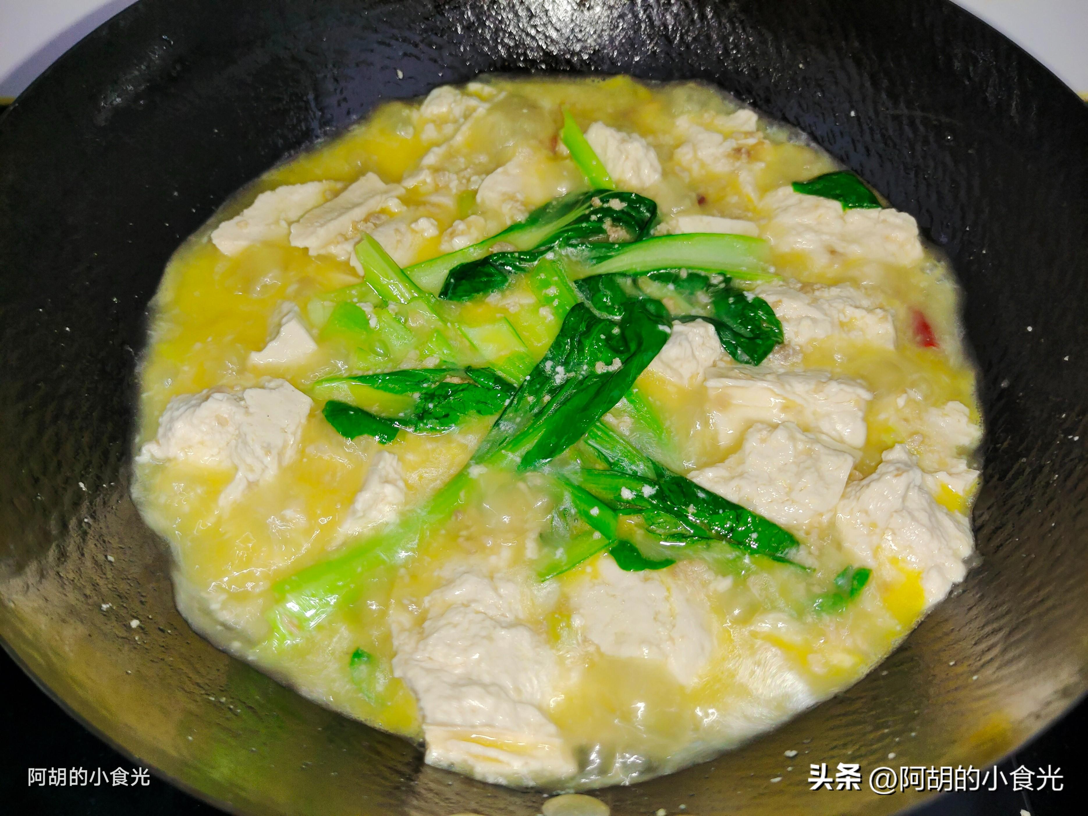 第六步:開蓋把青菜投入鍋中,簡單翻拌一下沒入湯汁中燙熟就可以出鍋裝盤了。沒有比這更簡單的一道家常菜,食材簡單,做法更簡單,成菜味道不俗,豆腐軟嫩入味,趁熱喫纔是正道,滿滿的家常好味道,感興趣的隨手就能燉一鍋。
