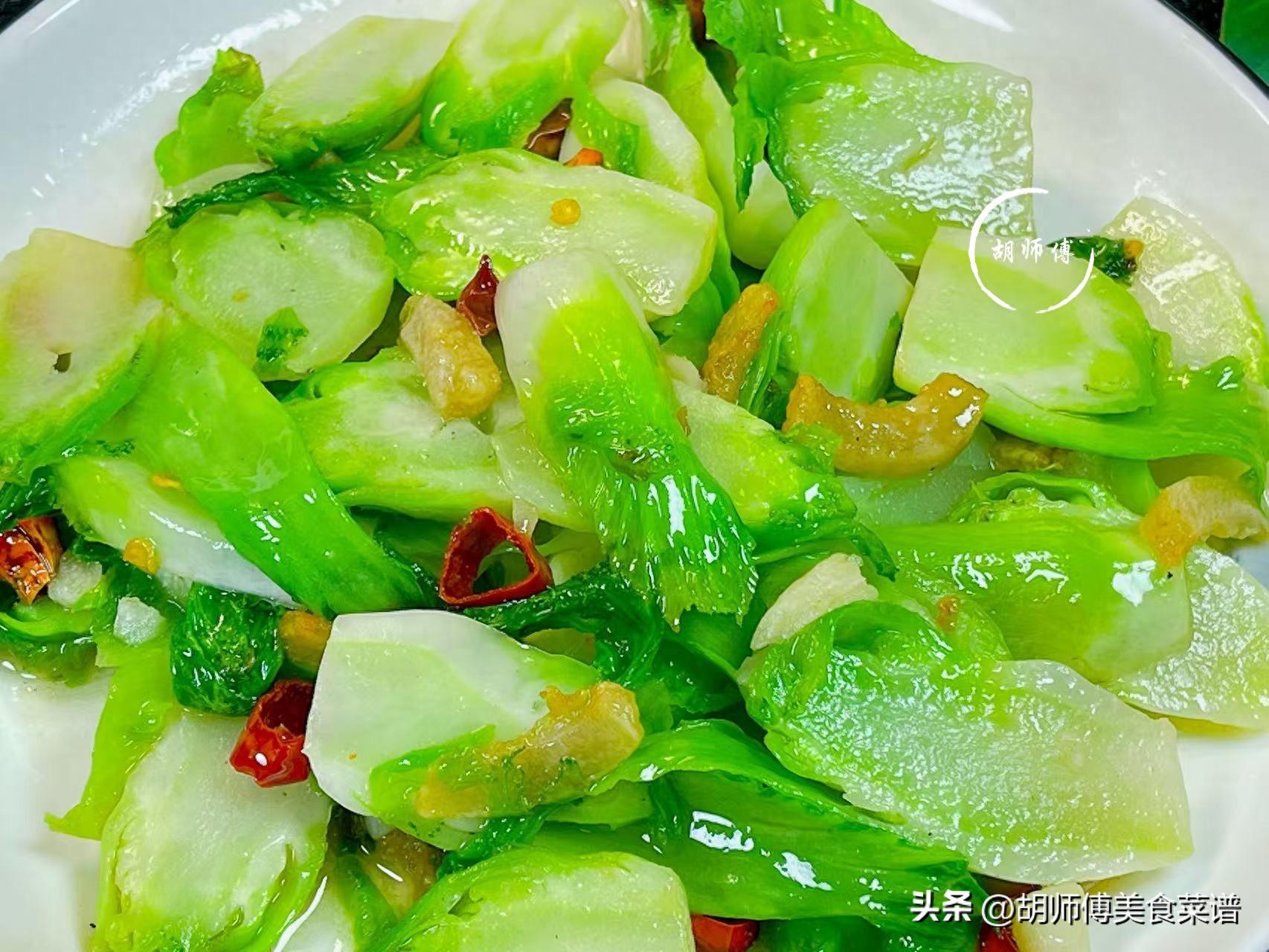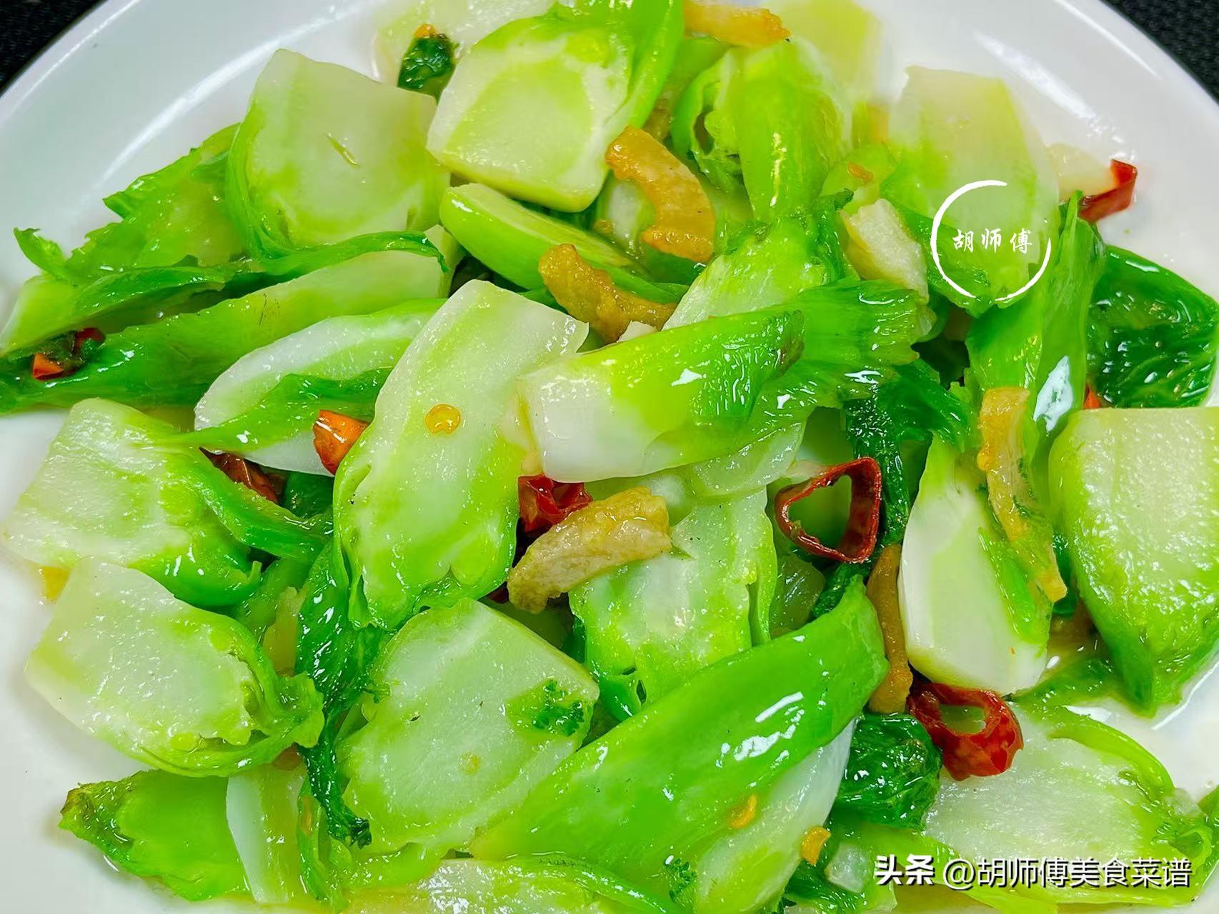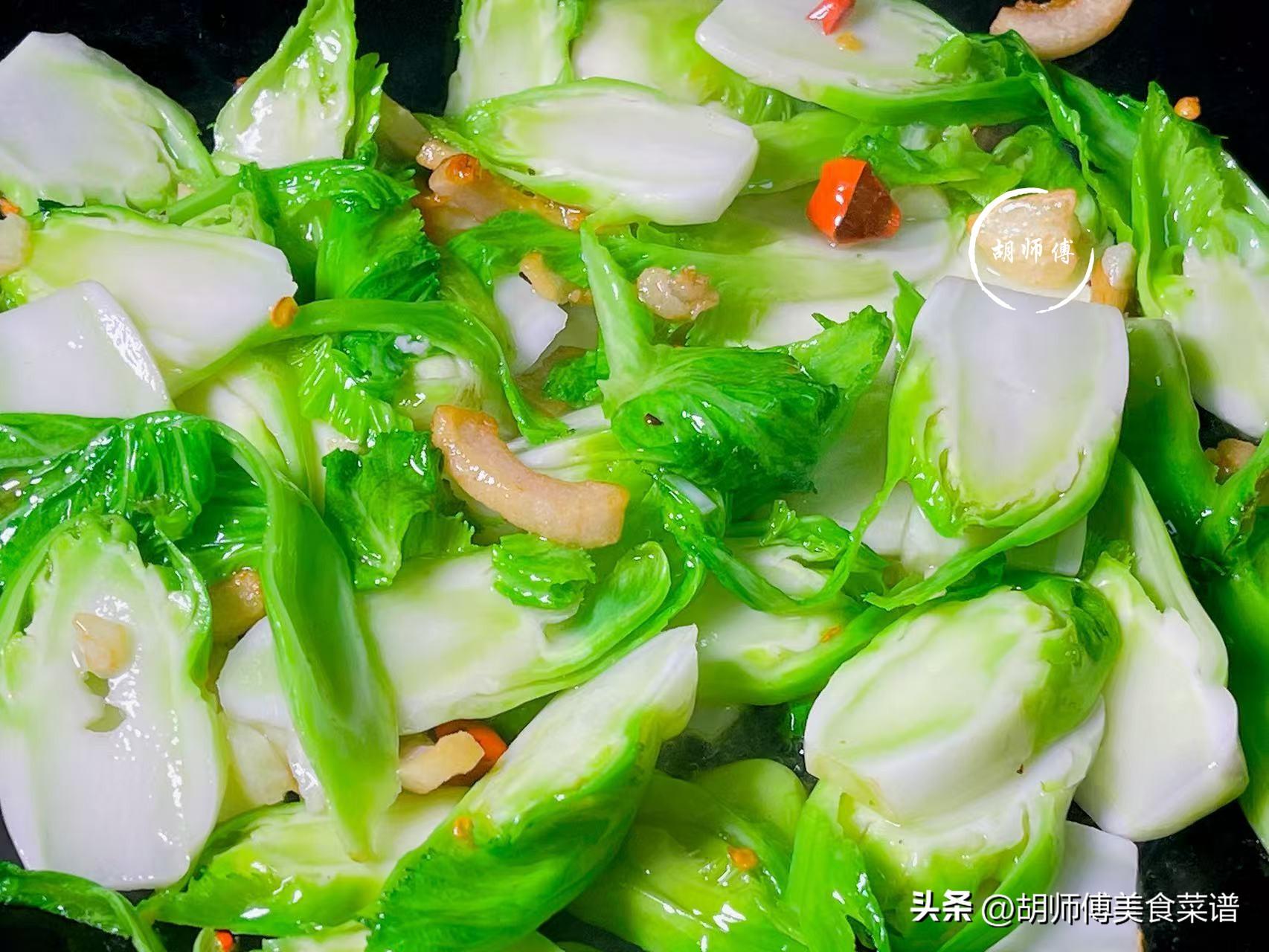 2、兒菜不是特別喫油的蔬菜,炸完豬油後,如果鍋中油比較多,一定要舀一點出來,如果油太多,炒熟的兒菜喫着是比較膩的。
