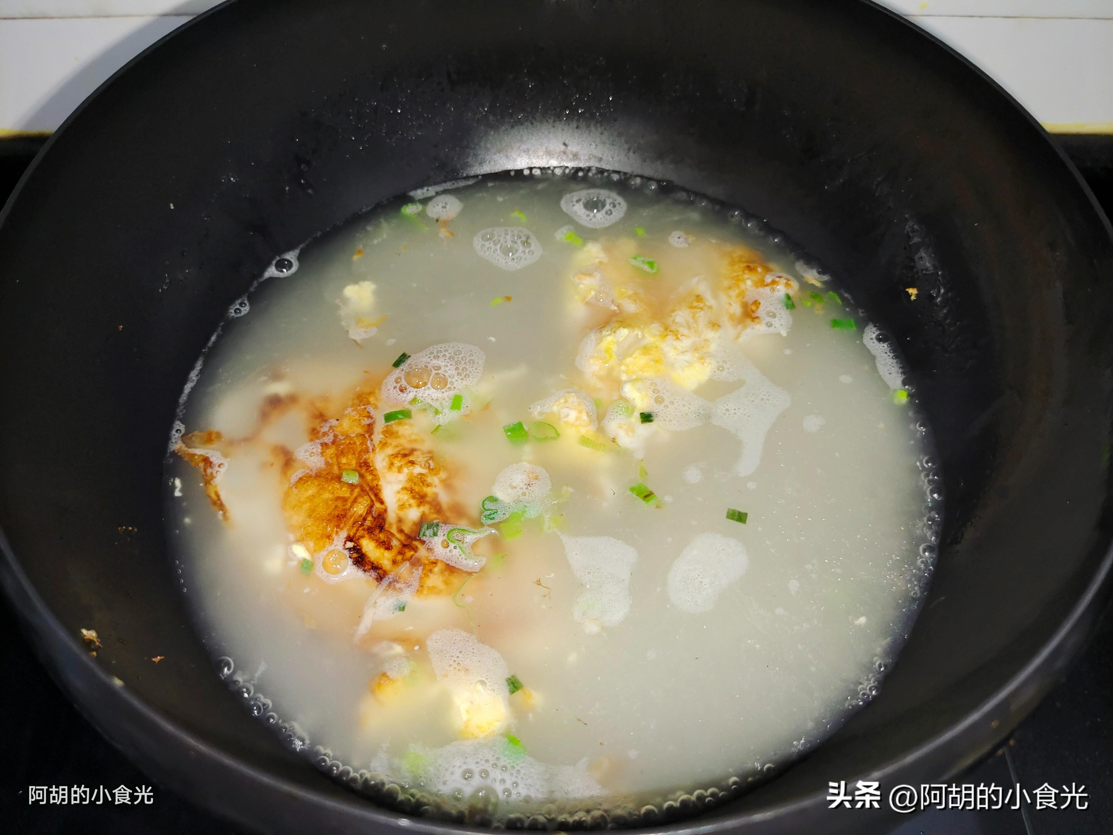 煎好雞蛋一定要衝入開水,而後再保持大火煮一煮,這樣可以快速地將湯水煮至泛白。