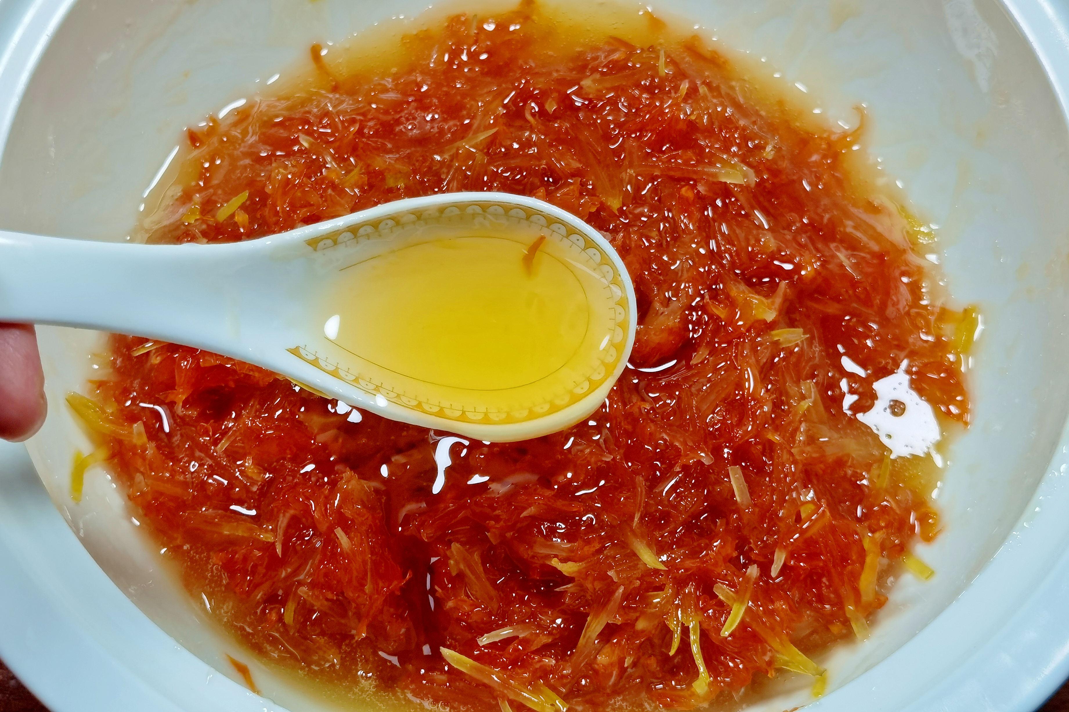 4. 口感可以自由發揮:喜歡果肉感的,可以多放些果肉;喜歡柚子皮獨特香氣的,皮絲可以切粗一點點。甜度也可以根據冰糖和蜂蜜的用量自行調節。