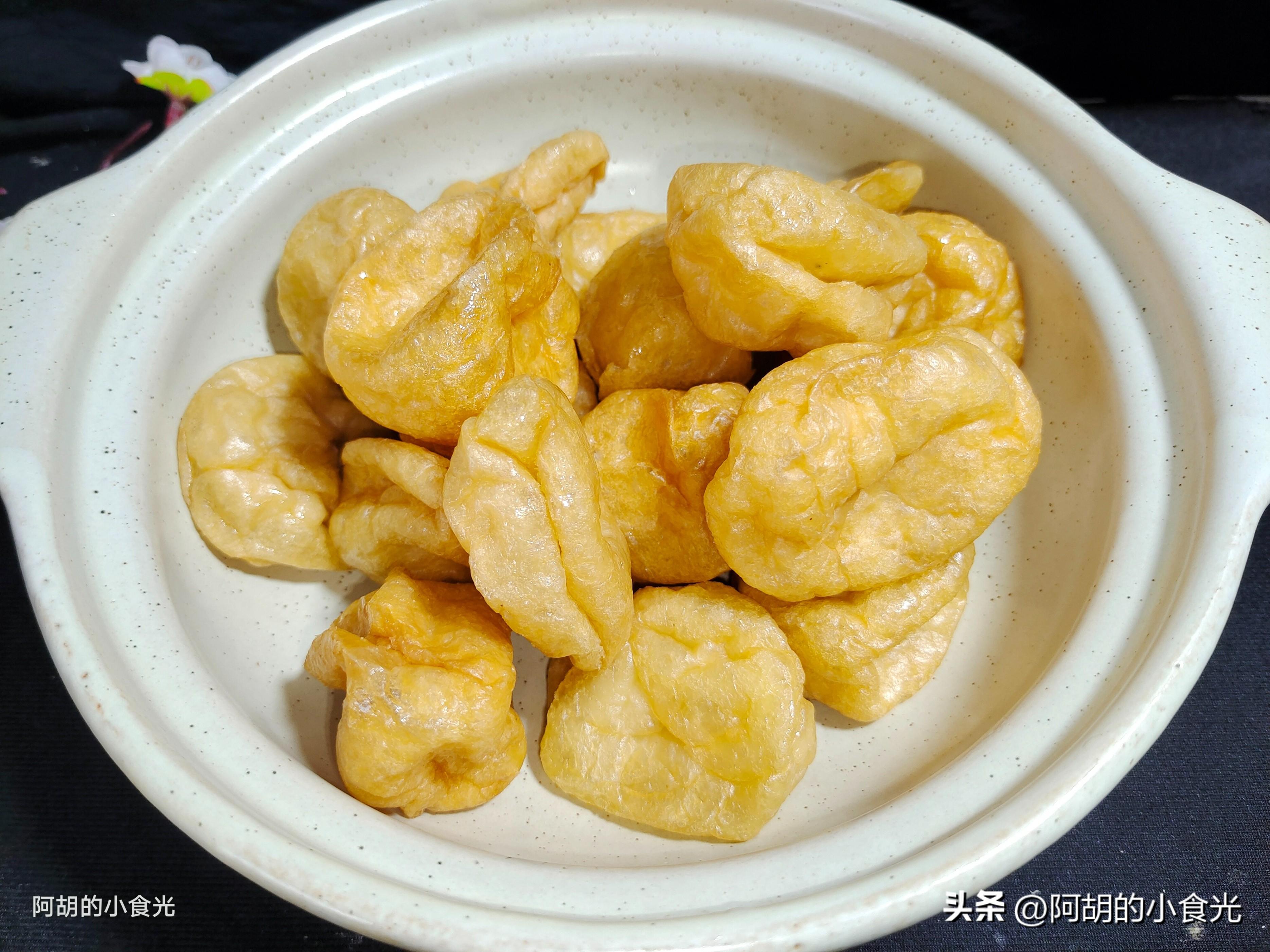 魚腐是魚肉做的,比較的鮮嫩並口感比較敦實,用來煮湯炒菜都很鮮美。找不到這個食材的就用油麪筋焯水後代替。記住,油麪筋焯水後一定不要用力去擠幹水分,否則炒出來就是個硬餅。