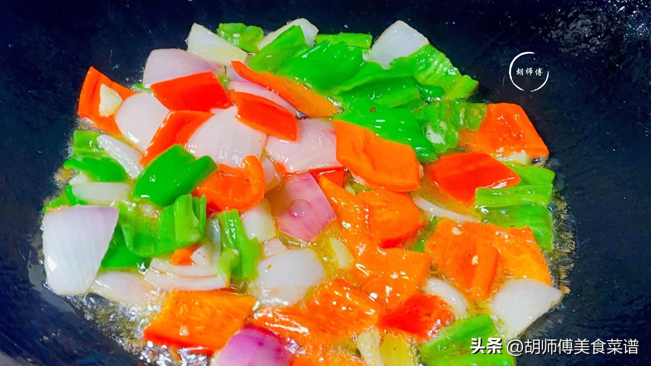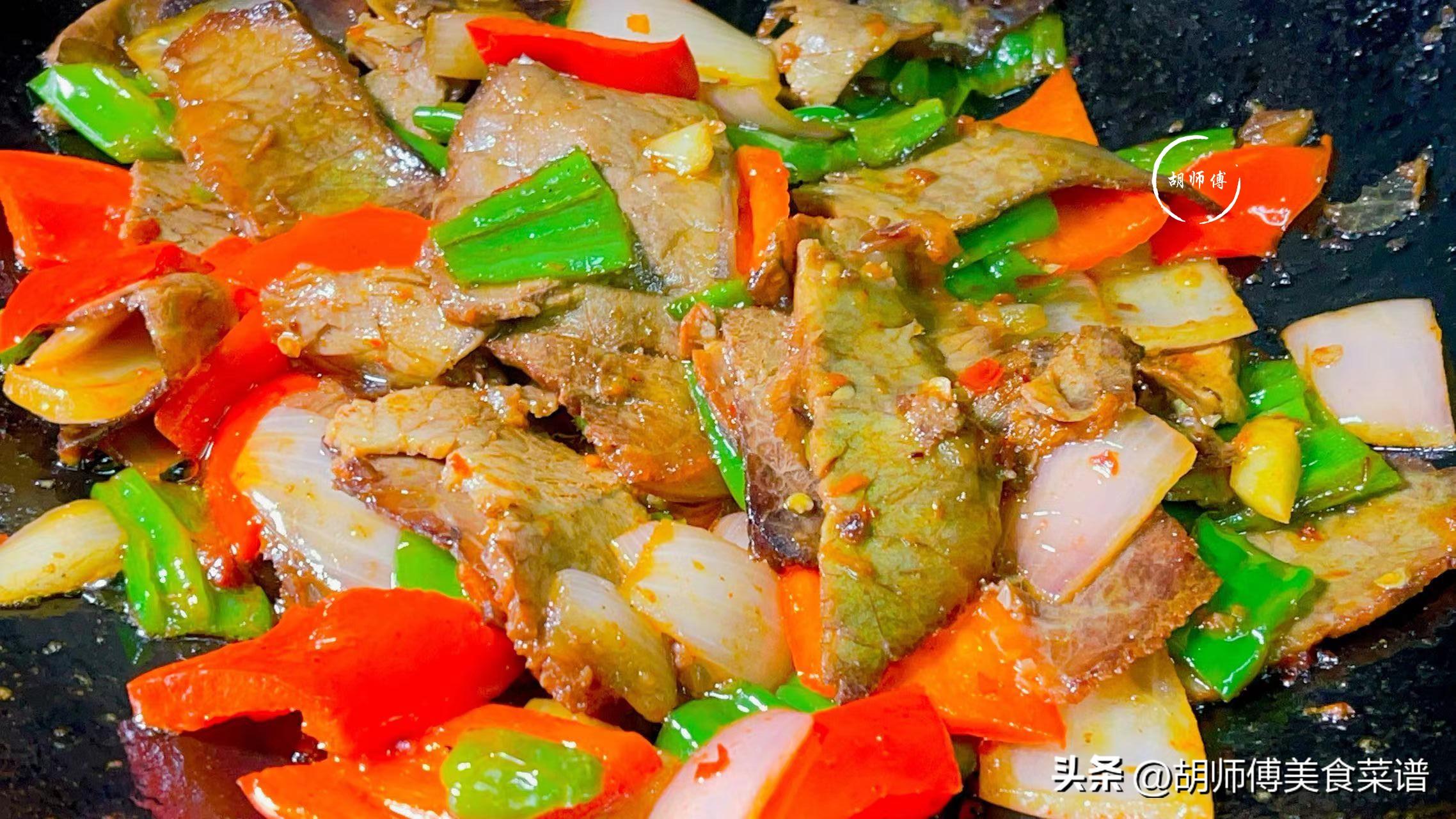 【食材準備】:滷牛肉250克、青紅椒各50克、洋蔥50克、蒜末10克、豆瓣醬、生抽、白砂糖、食用油適量。