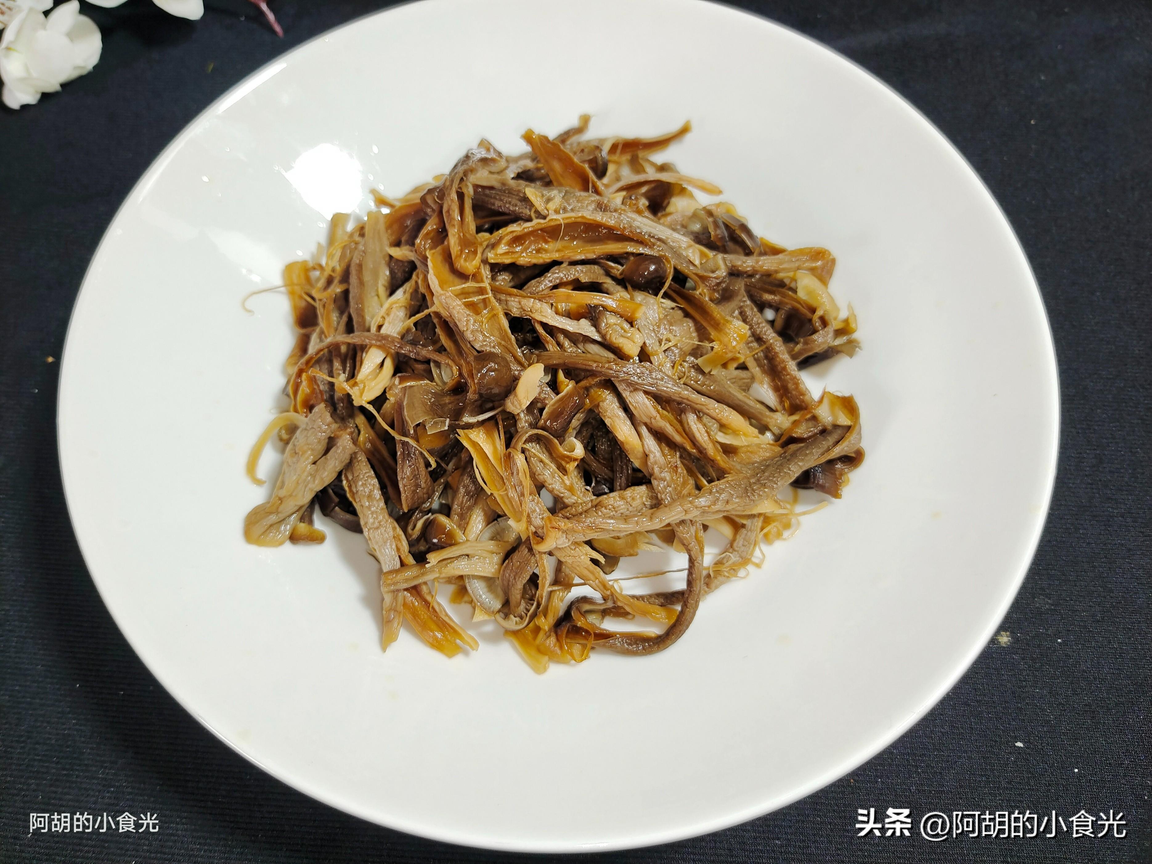第二步:再準備一些鹿茸菇,今天我用的是幹鹿茸菇,有條件的也可以用鮮蘑菇,比如白玉菇、鹿茸菇等等。這個乾的鹿茸菇需要用涼水浸泡一個小時左右,泡軟後將其撕開成絲,淘洗乾淨後倒入鍋中,撒入一些食鹽和雞精煮個十分鐘時間,撈出後控一控水分待用。