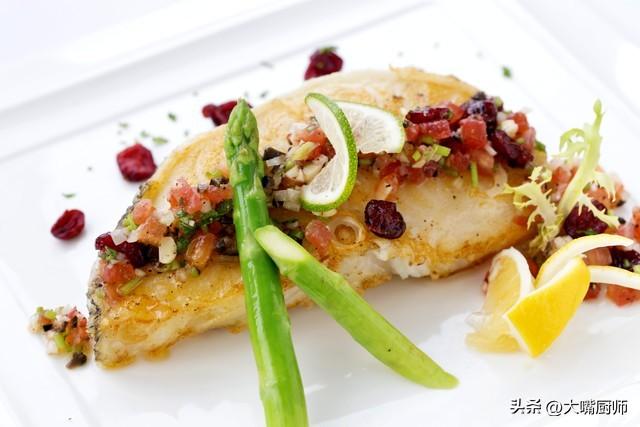 材料:銀鱈魚塊200克、蘆筍6根、橄欖油10毫升、黑胡椒碎2克、海鹽2克、檸檬汁5毫升