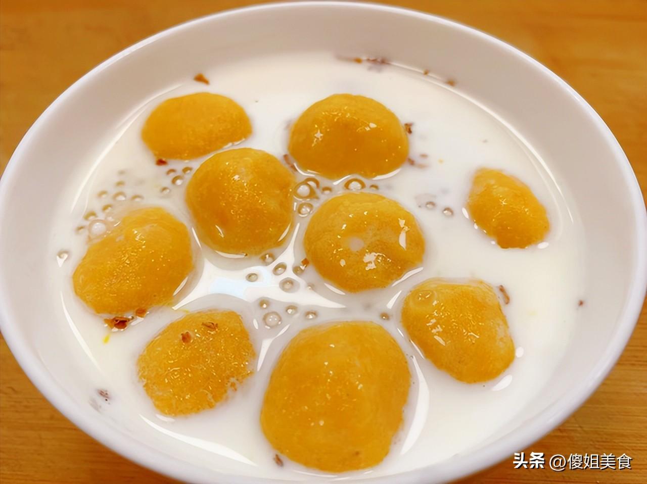 一道色香味俱全的南瓜糯米丸子就做好了,趁熱嘗一口,南瓜丸子的軟糯、西米的Q彈、牛奶的香醇、蜂蜜的清甜,所有這些味道和口感在嘴裏交織,簡直太滿足了。這道甜品不僅好喫,做起來也沒什麼難度,即使是廚房新手也能輕鬆搞定,而且它特別適合冬天,不燥不膩,恰到好處的清甜讓人回味無窮。