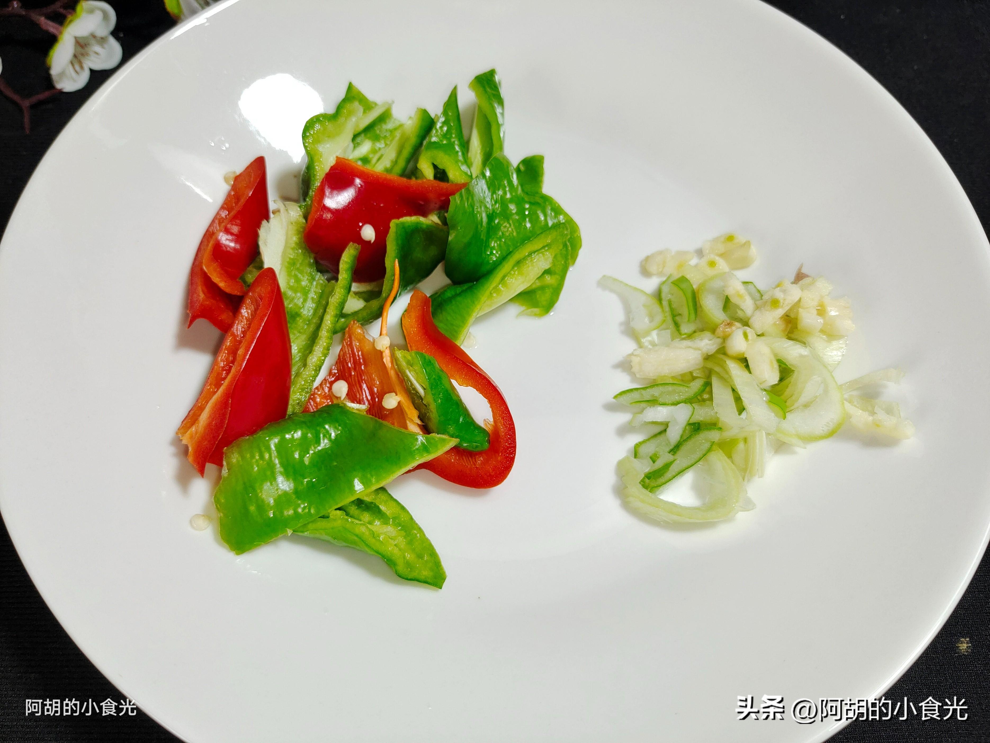 第三步:還有青紅椒各一個切成塊備用,一些蔥薑蒜末作爲小料使用。不喜歡青紅椒的也可以用小青菜來代替即可。