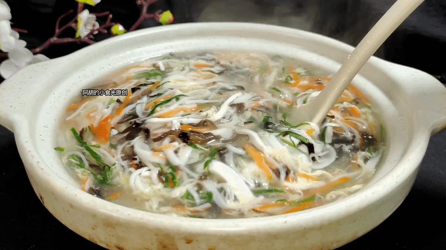 今天這碗湯應該叫做“羹湯”,它的做法很簡單,就是幾樣食材一塊煮一煮再調味勾芡即可。食材有蟹柳、青菜、胡蘿蔔、豆腐、木耳。最後的味道是鮮甜爽口,其中的鮮甜之味就來自於“蟹柳”這個食材,感興趣的可以試一試。