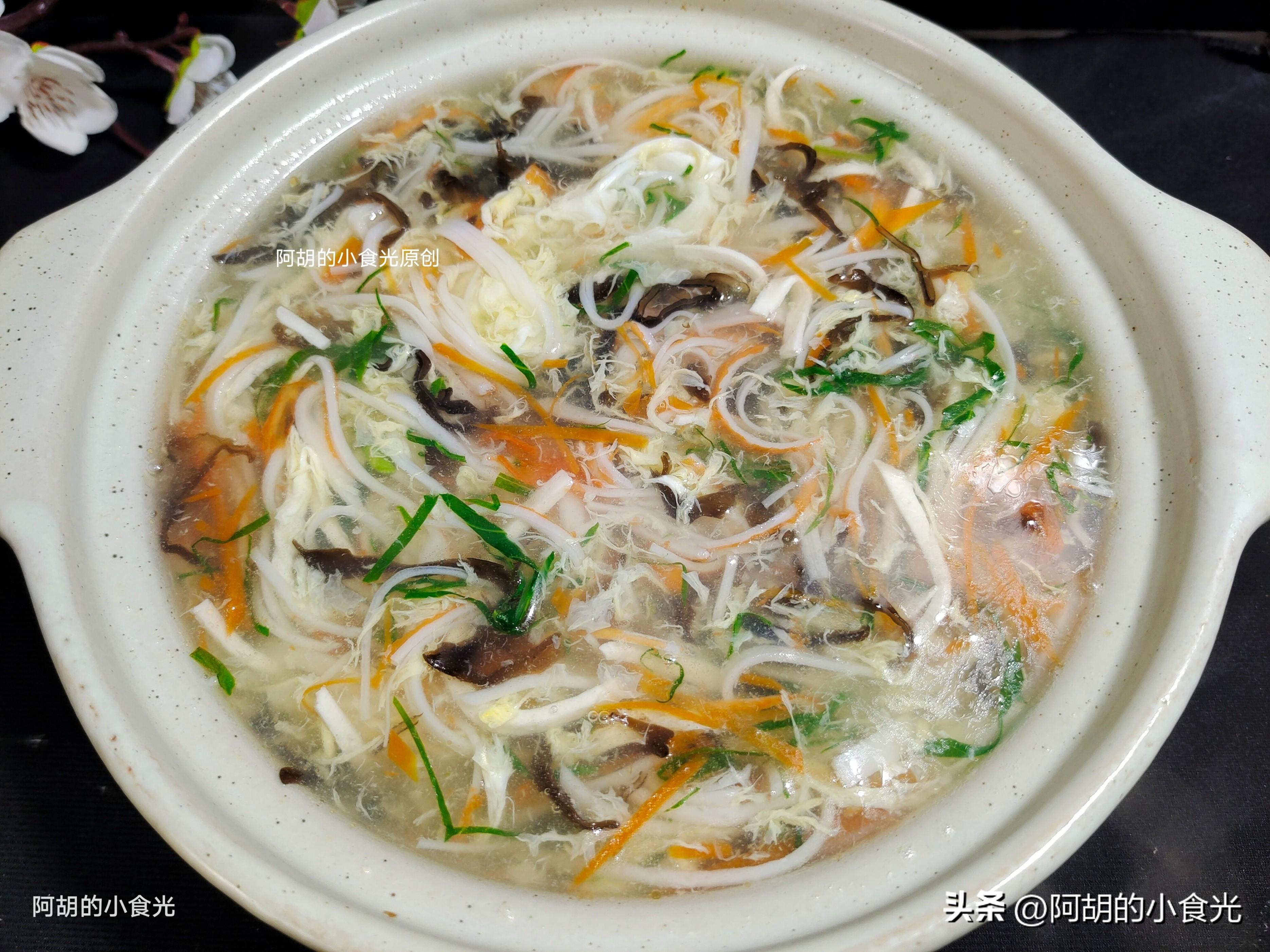我是阿胡的小食光,一個喜歡研究把普通食材做出更多花樣美食的饕餮小食客!立冬後要多喝湯,這碗七彩蟹柳羹可以試一試,鮮甜爽口,飯前來一碗讓人食慾滿滿,值得試一試。如無特殊情況,我每天都會按時分享一道家常美食的做法,在此特別感謝您的每一個贊和“小紅心”,明天的內容依舊很精彩,敬請期待!