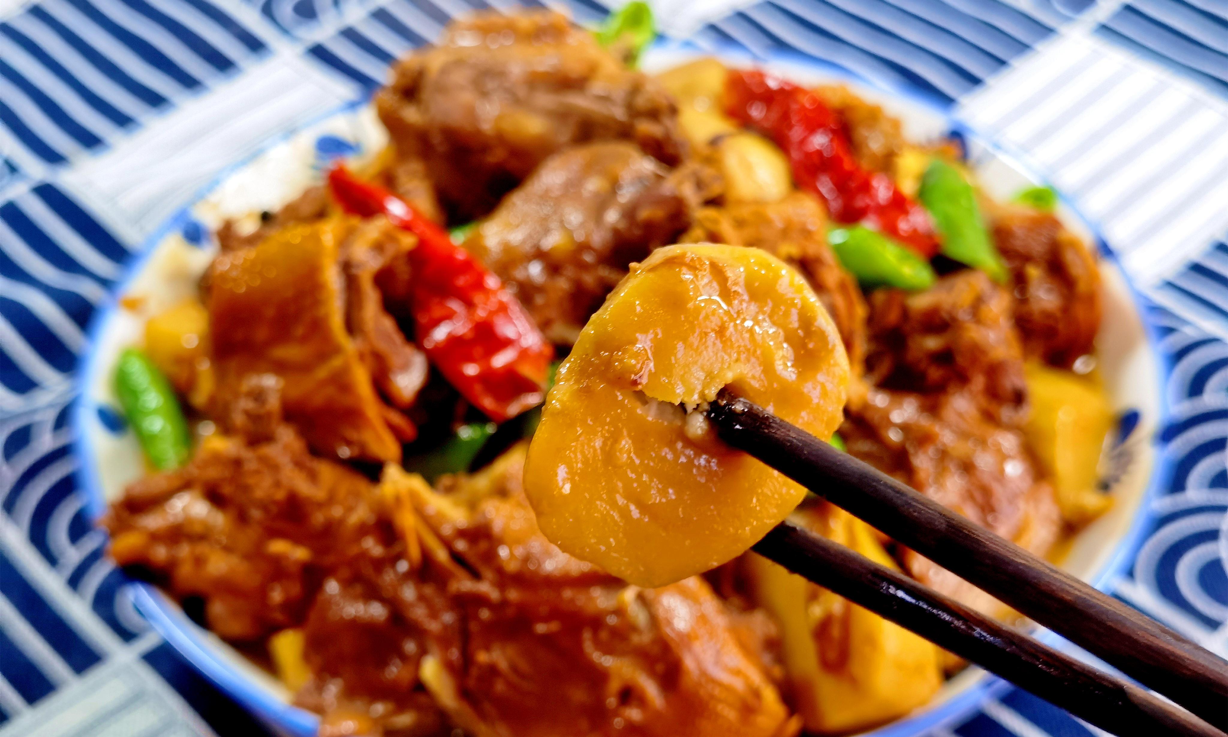 6. 放入芋頭塊,繼續燉15-20分鐘,直到芋頭軟糯,最後大火收汁即可。