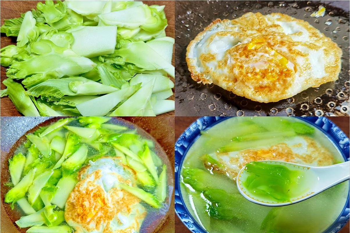 - 煎蛋時火候稍大一點,蛋邊微焦煮湯更香。
