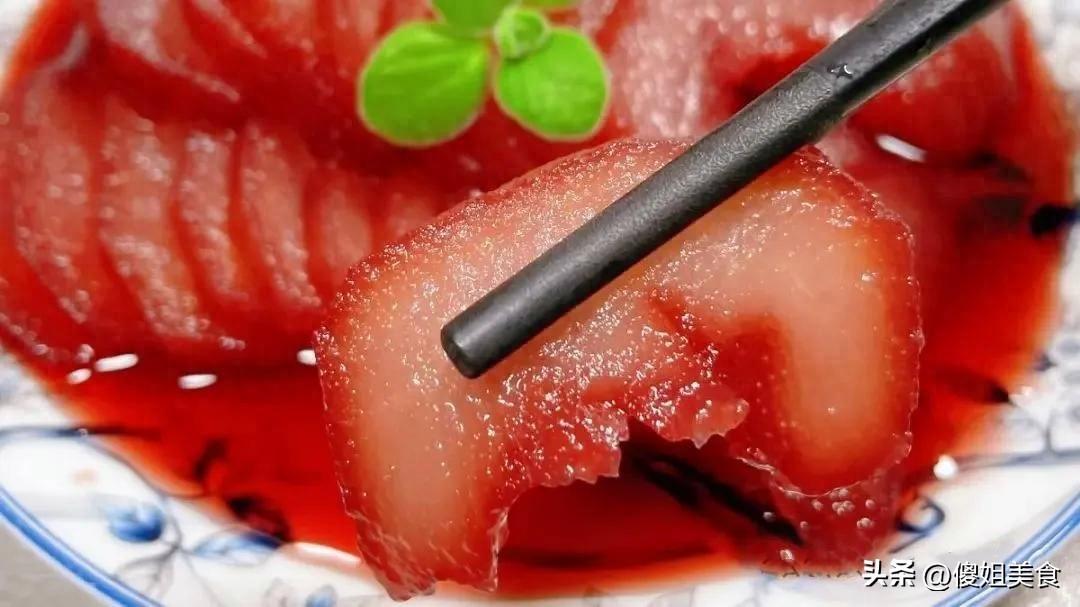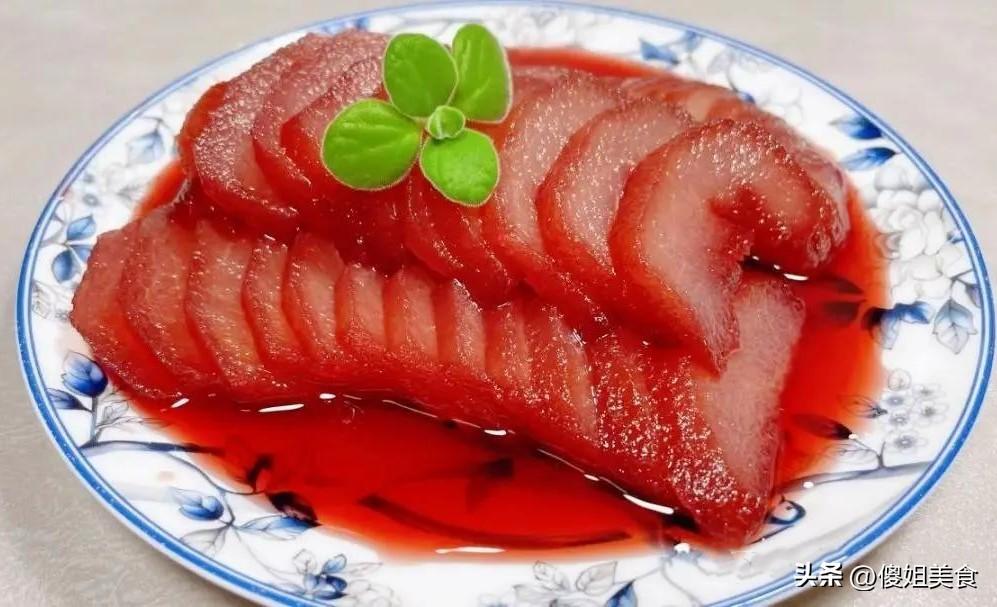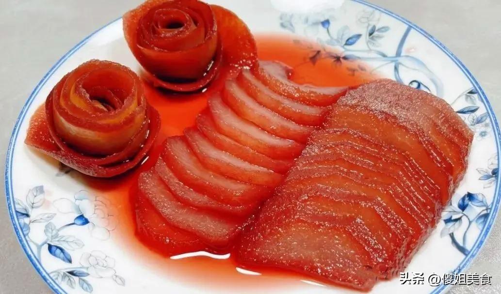 等到第二天從冰箱裏取出來的時候,你會驚喜地發現,雪梨已經被紅酒浸泡成了漂亮的深紅色,看起來特別誘人。這時候把雪梨切成薄片,擺個漂亮的造型,就可以端上桌招待客人或者與家人分享了。