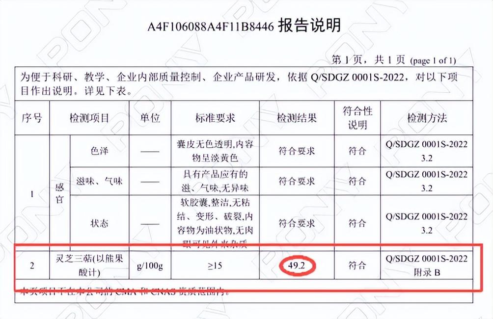 權威機構檢測顯示,每100克孢子油中,總三萜實測達到 49.2克,屬於行業中較高的那一檔。對照目前的常規標準(通常要求≥20g/100g),這個數值在榜單中顯得格外突出。麥角甾醇方面同樣保持良好狀態,每100克含 83毫克,遠高於業內常見的基礎水平(一般認爲≥50mg/100g較爲理想)。