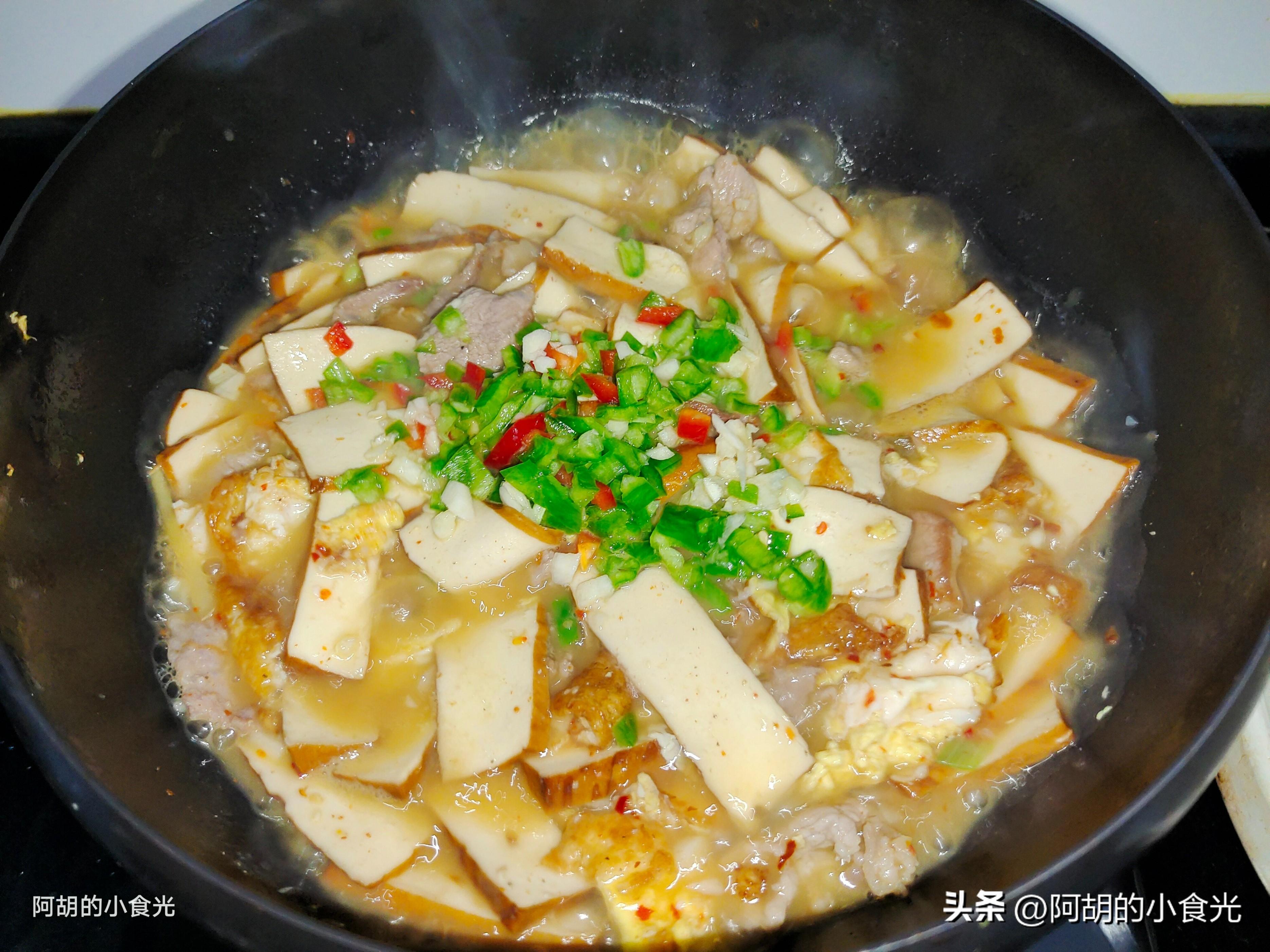肉片、香乾和雞蛋就是今天這道菜的主要組成,食材中的主要優質蛋白來源都搭配其中,出鍋一盤就是滿滿的高蛋白。而且成菜味道鮮香微辣,口感軟嫩適中,有湯有菜特別適合這個季節,感興趣的一定要試一試這個搭配做法。