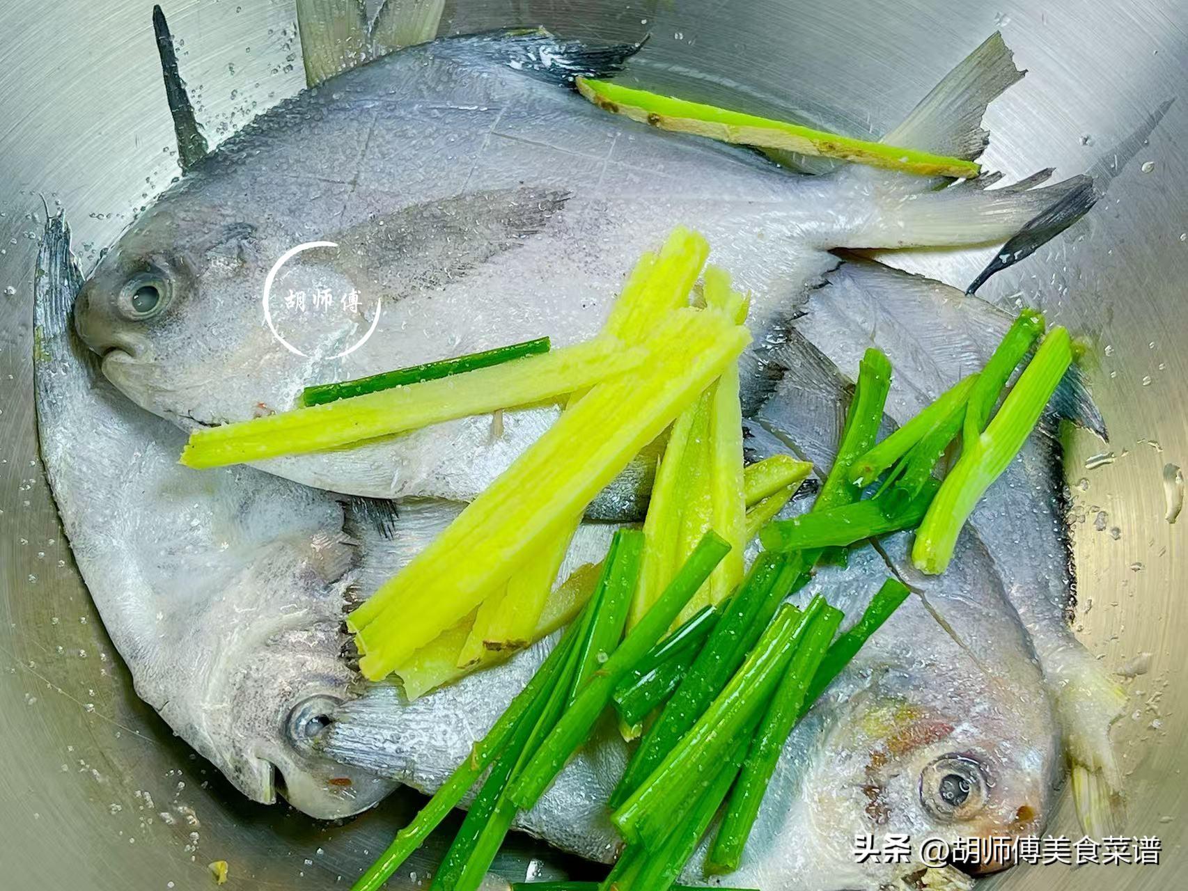 【食材準備】:銀鯧魚3-6條、蔥段10克、薑絲10克、胡椒粉、食鹽、白砂糖、椒鹽粉適量。