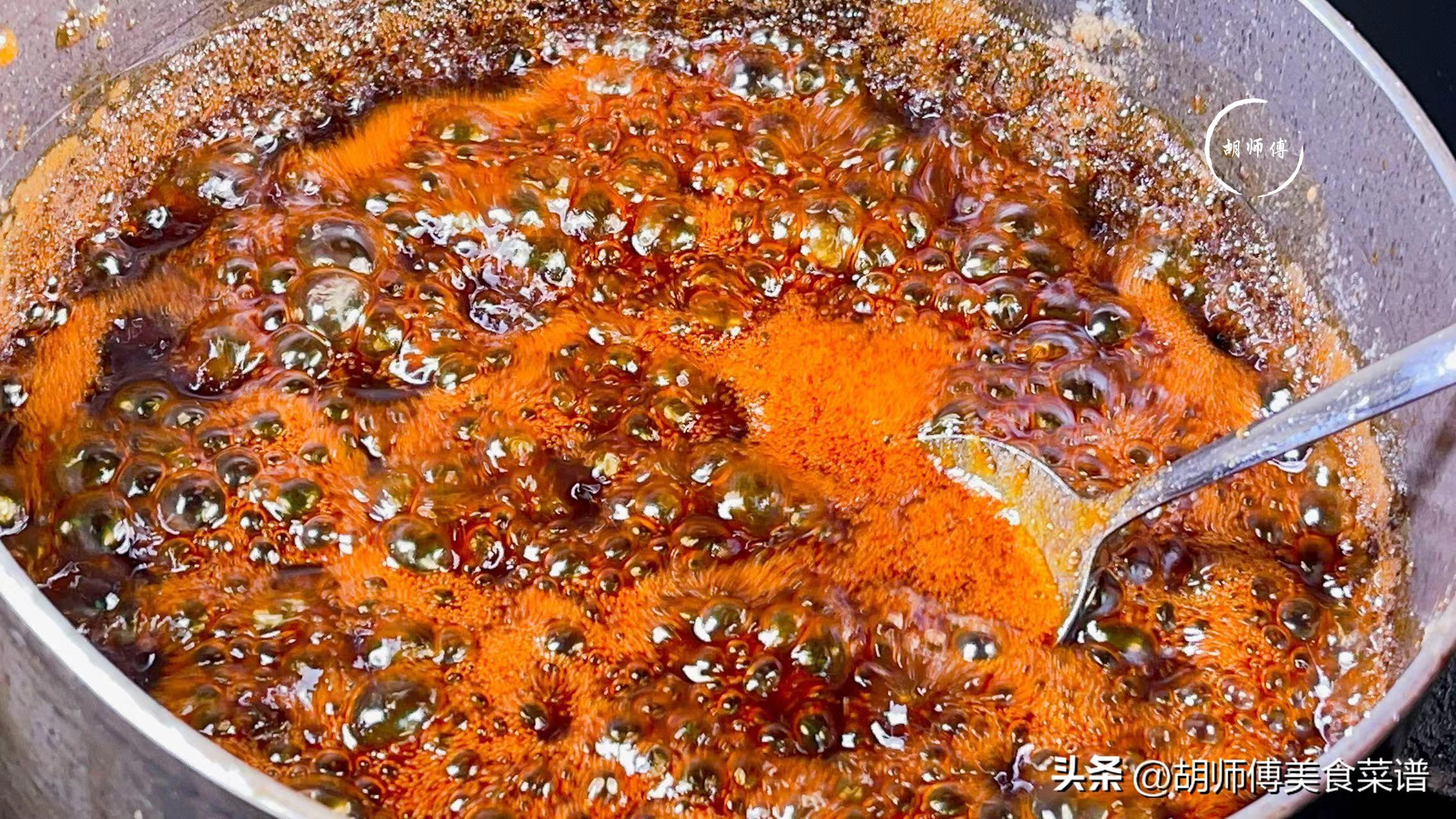 第三步:不斷的攪拌薑糖汁,這樣可以避免薑糖產生糊味,等薑糖特別黏稠時,幾乎能拉絲了,就需要立即關火。