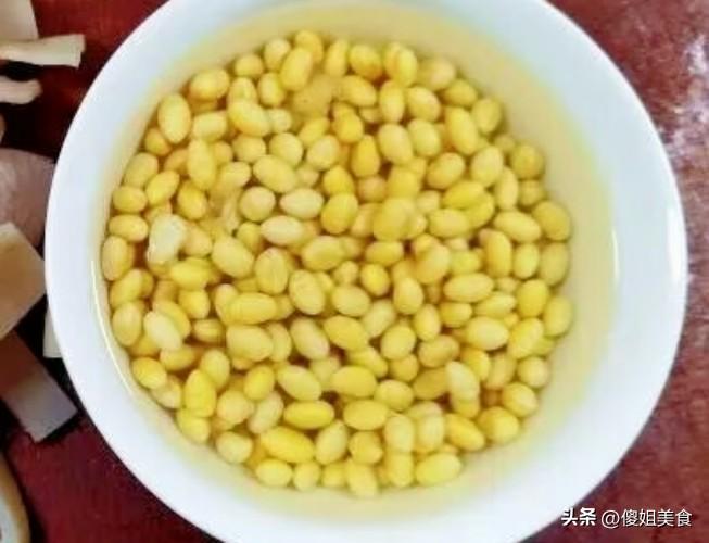 做法:1、先把黃豆洗乾淨,用清水浸泡至少4個小時,最好泡上一夜,泡好的黃豆會脹大很多,用手指一掐就斷就可以了。